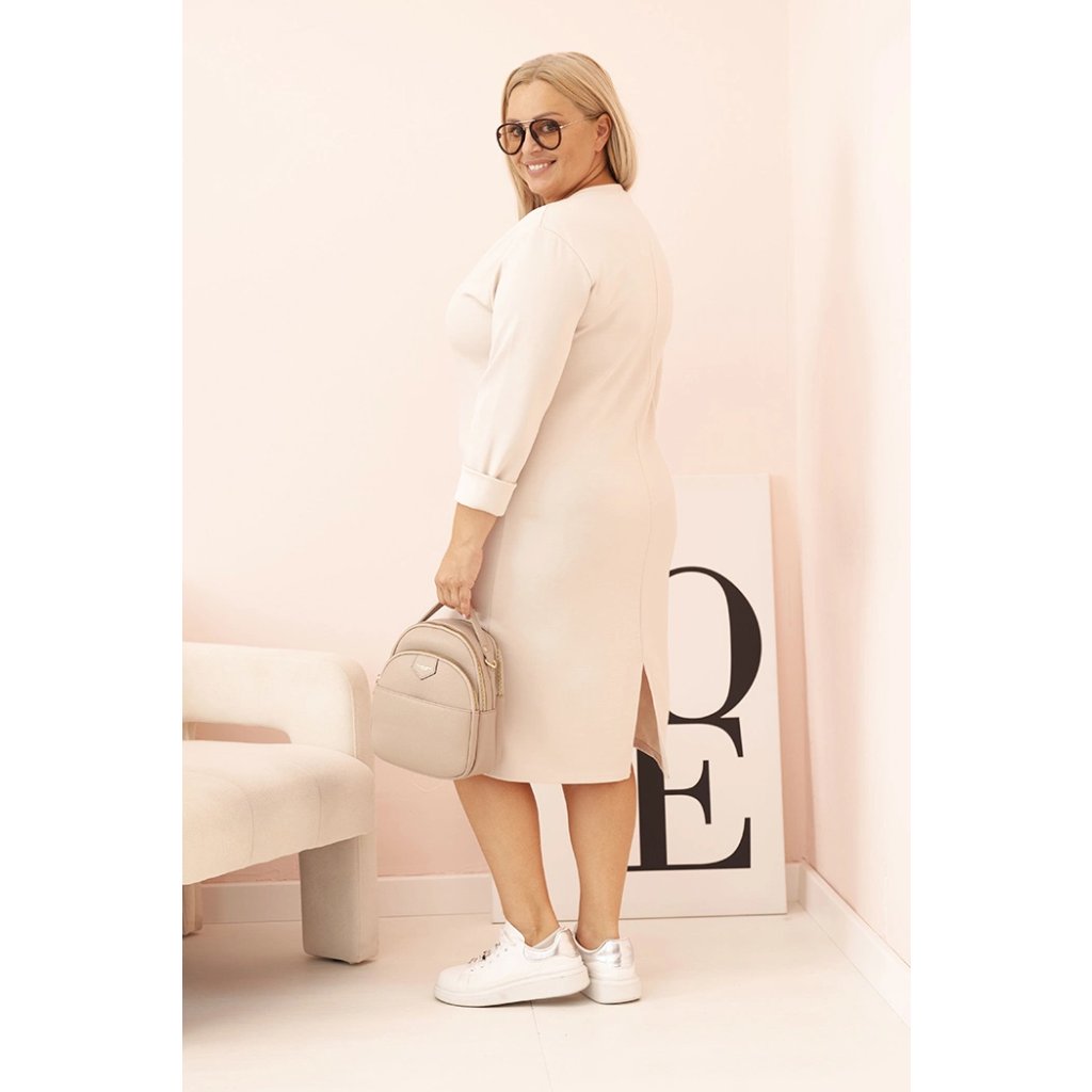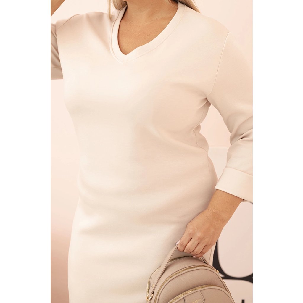 Dámské Plus Size máslové šaty s výstřihem do V béžové