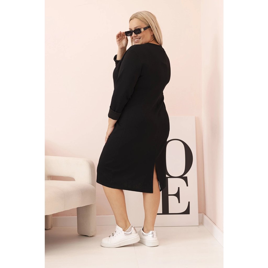 Dámské Plus Size máslové šaty s výstřihem do V černé