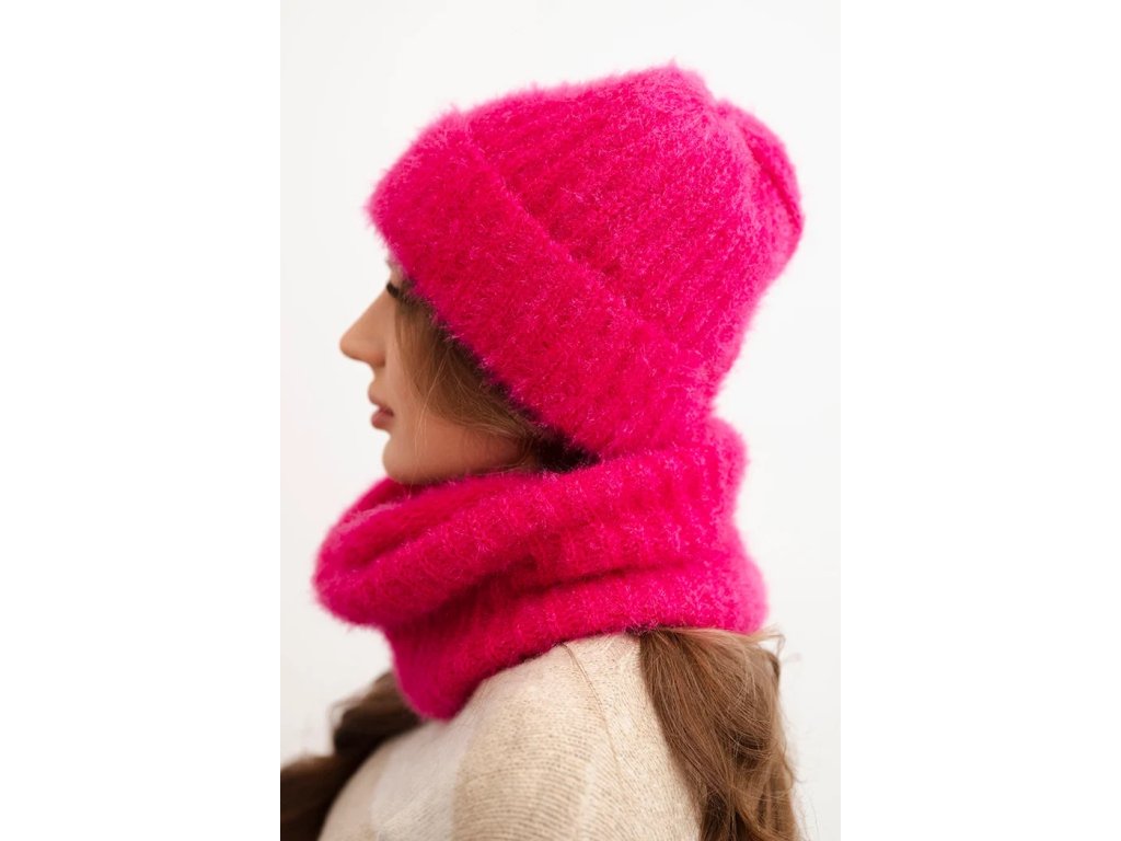 Sada skládající se z čepice a nákrčníku, vyrobená z nadýchané a měkké pleteniny s příjemnou strukturou. Materiál je elastický a dobře se přizpůsobuje hlavě a krku, poskytující komfort a teplo v chladných dnech.