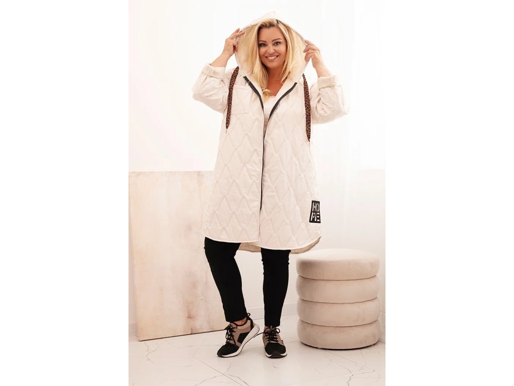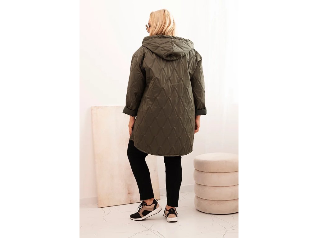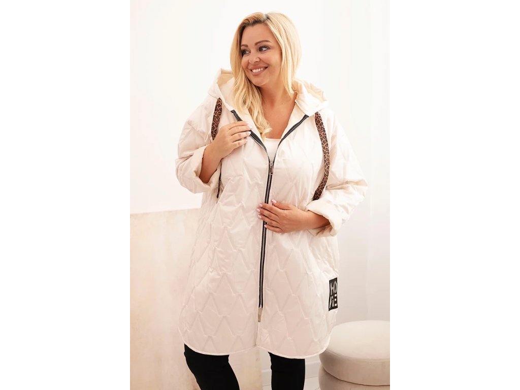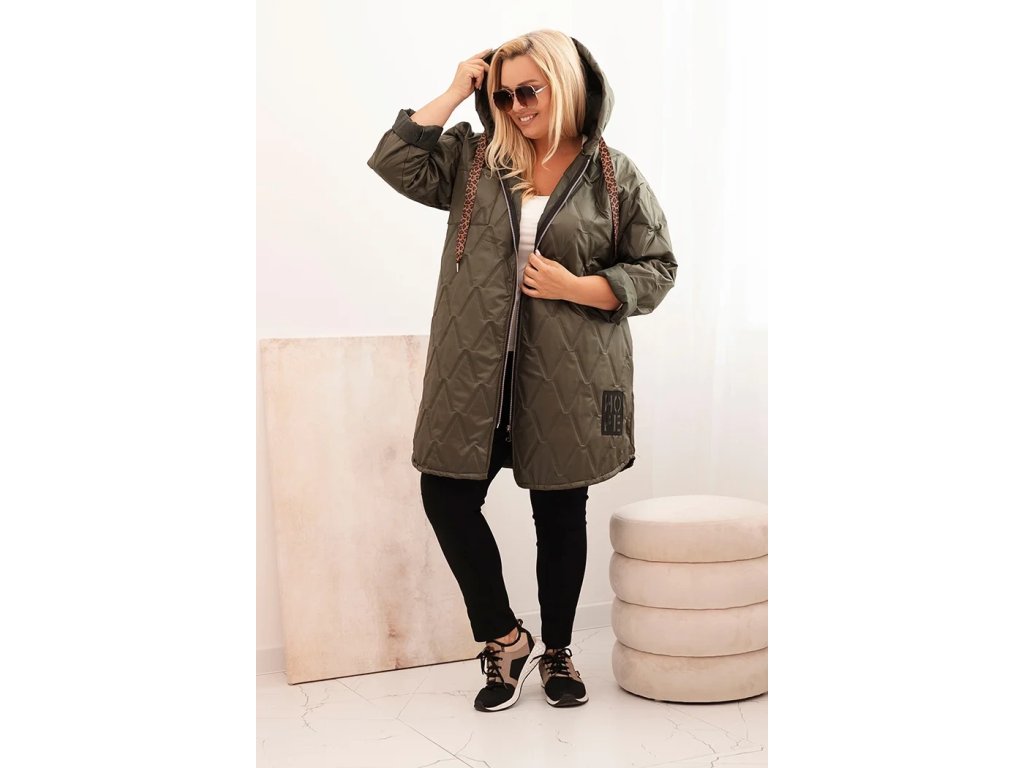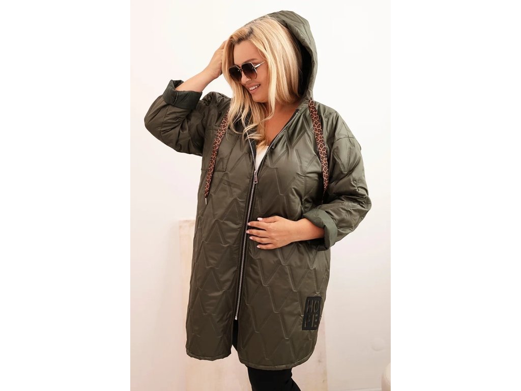 Stylová dámská prošívaná bunda ve velikosti plus size je vynikající volbou pro ženy nosící větší velikosti – od XL do 4XL. Její volný, oversized střih zajišťuje maximální komfort nošení a skvěle se přizpůsobuje postavě, neomezuje pohyb. Model se vyznačuje geometrickým prošíváním, které opticky zeštíhluje siluetu, a módní kapucí se stahovací šňůrkou v leopardím vzoru. Zip a praktická kapsa na prsou podtrhují moderní a funkční charakter bundy.