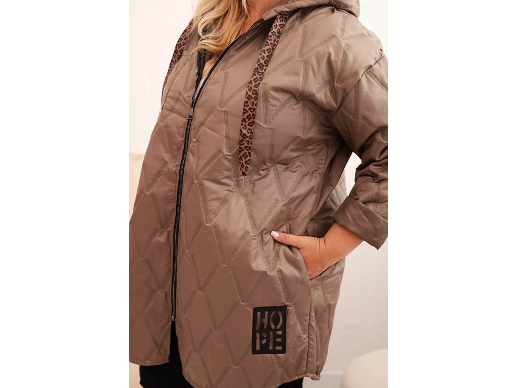 Dámská bunda Plus Size prošívaná s kapucí a nápisem HOPE fango