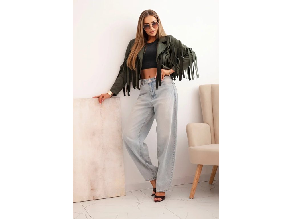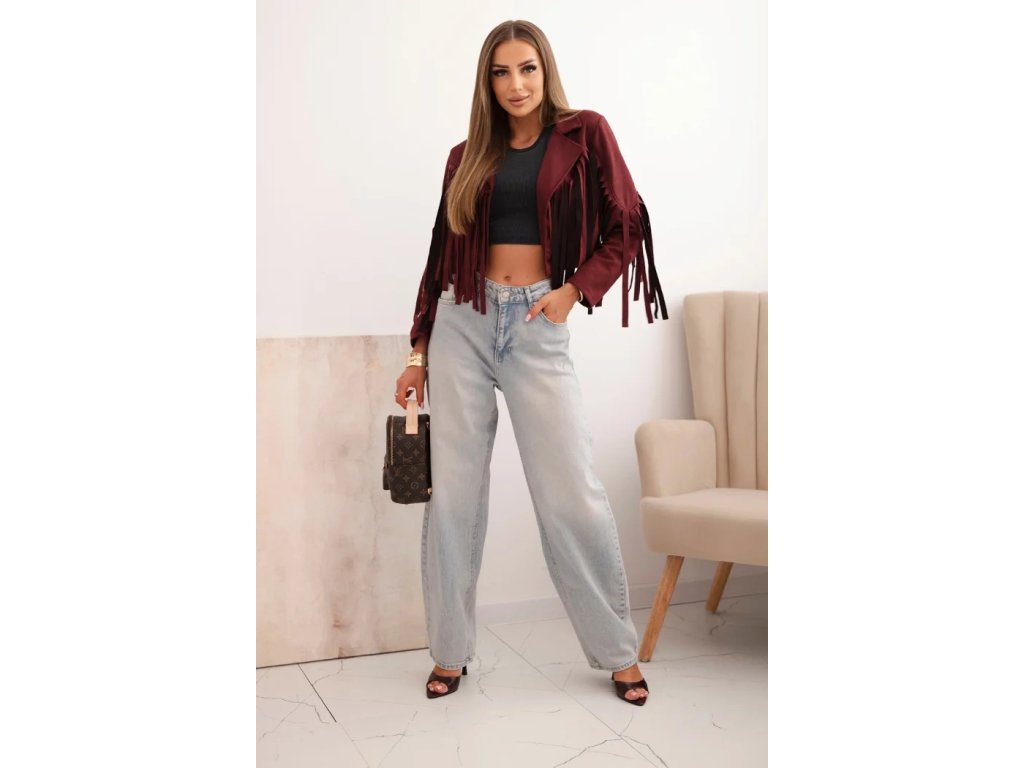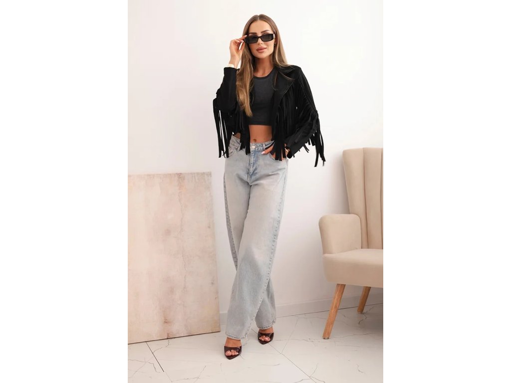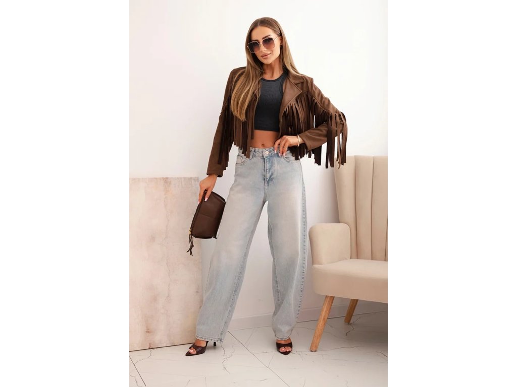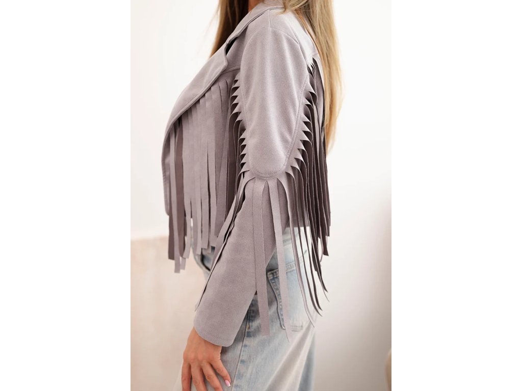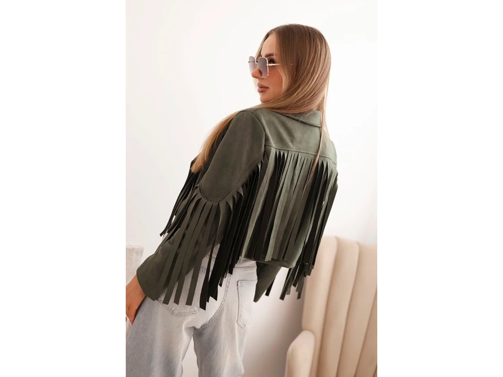 Dámská bunda s třásněmi je výjimečný model, který přitahuje pohledy a dodává outfitu charakter. Vyrobena z měkkého materiálu připomínajícího semiš, dokonale zapadá do nejnovějších boho a western trendů. Krátký střih krásně zdůrazňuje postavu a efektní třásně podél rukávů a přední části jí dodávají uvolněný a stylový vzhled. Skvěle se hodí jak na každodenní nošení, tak na festivaly či venkovní setkání. Tento model je skvělou volbou pro ženy, které si cení jedinečného stylu a pohodlí. Můžete ji nosit jak k džínům, tak k šatům, a vytvářet originální a módní outfity. Velikost je univerzální a bude vhodná pro dámy velikosti S, M nebo L.