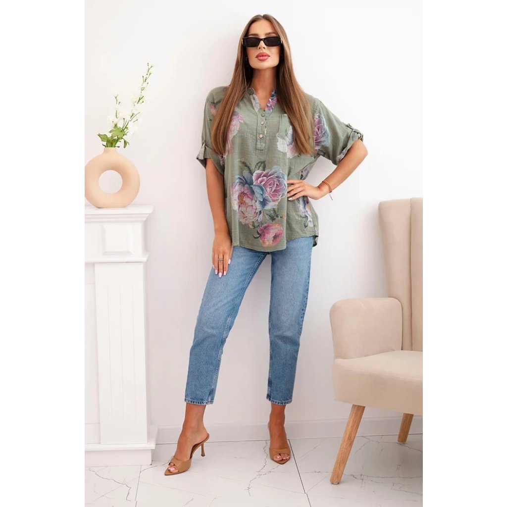 Dámská bavlněná halenka s květinovým vzorem/barvy