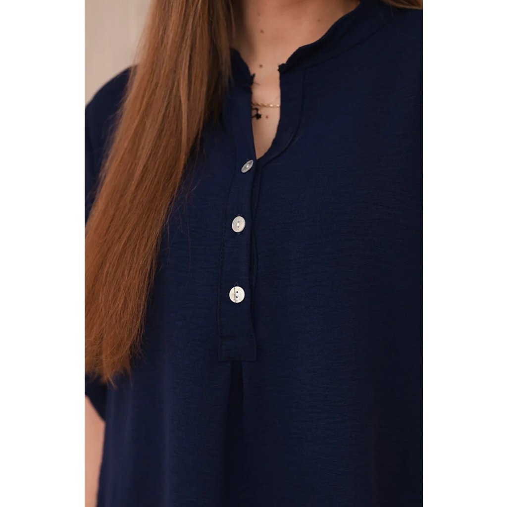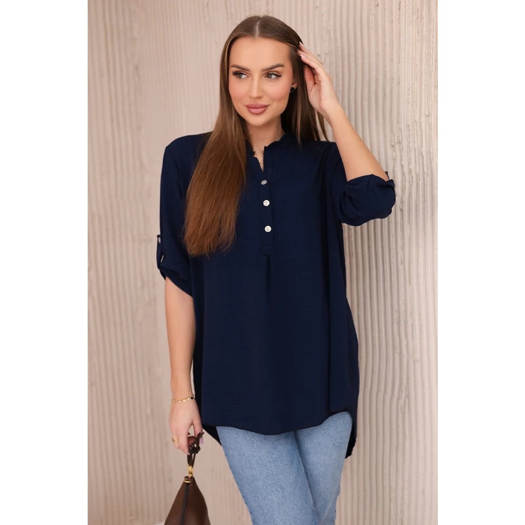 Objevte mimořádnou eleganci a pohodlí v prezentované halence s delšími zády, knoflíkovým výstřihem a ohrnutými rukávy, tato halenka nejen vypadá výjimečně stylově, ale poskytuje také bezkonkurenční funkčnost. Ciťte se sebevědomě a elegantně v halence, která podtrhne váš jedinečný styl. Díky delším zadním dílům vytvoříte jemné a módně nepravidelné proporce a knoflíkový výstřih vám umožní upravit si halenku podle vašich preferencí. Vyhrnuté rukávy dodávají halence lehkost a ležérní charakter, ideální pro různé příležitosti. Ať už se jedná o obchodní jednání nebo relaxační kávu s přáteli, naše halenka vám poskytne pohodlí a styl v jednom. Nenechte si ujít příležitost přidat do svého šatníku tuto jedinečnou halenku! Objevte eleganci, pohodlí a funkčnost v jednom a zdůrazněte svůj jedinečný styl ještě dnes. Velikost je univerzální a bude vhodná pro ženy, které nosí velikost S, M nebo L.
