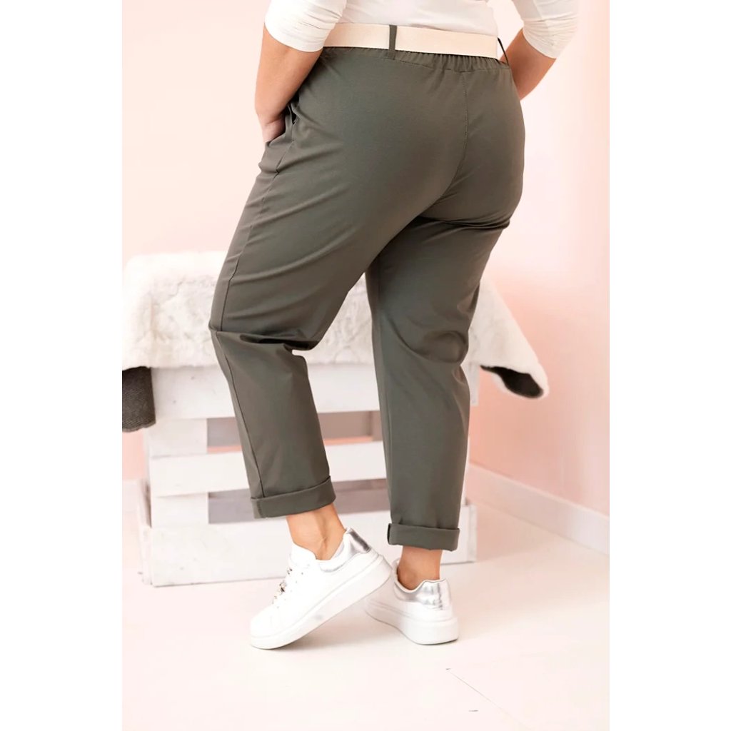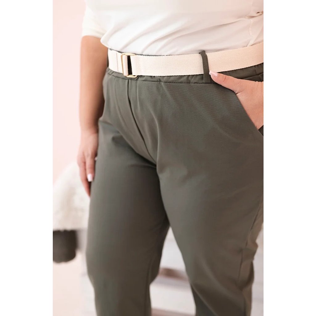 Dámské bavlněné kalhoty Plus Size s páskem khaki