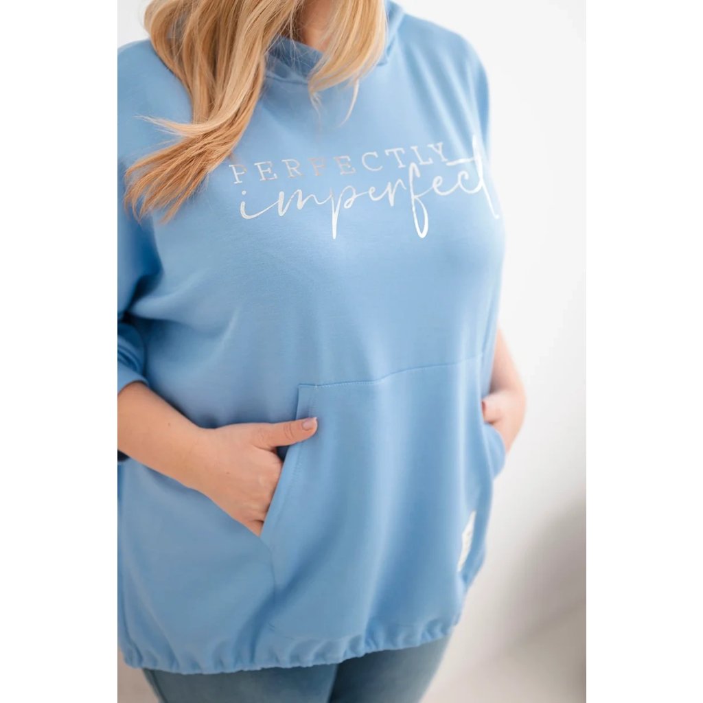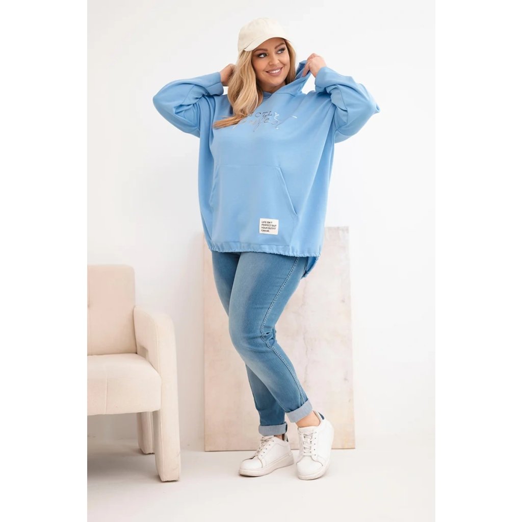 Dámská mikina Plus Size s kapucí a potiskem modrá