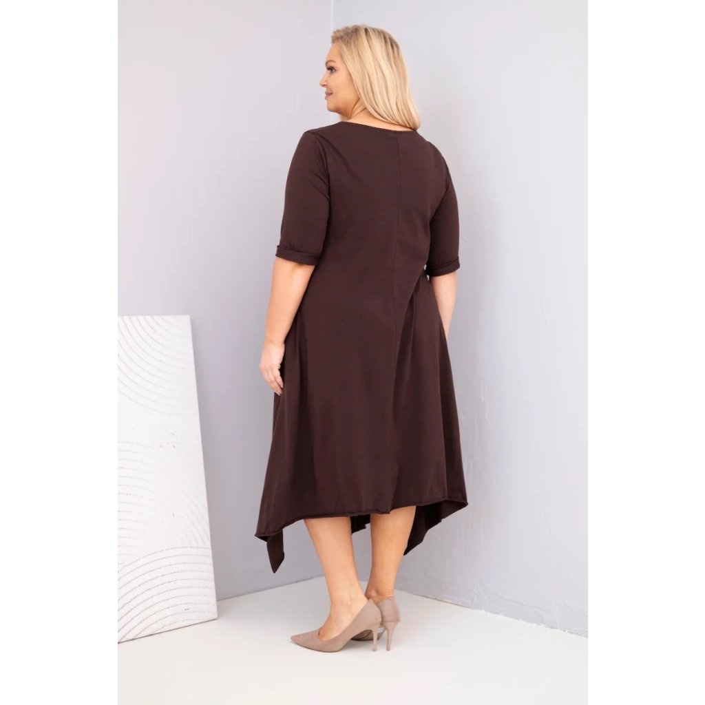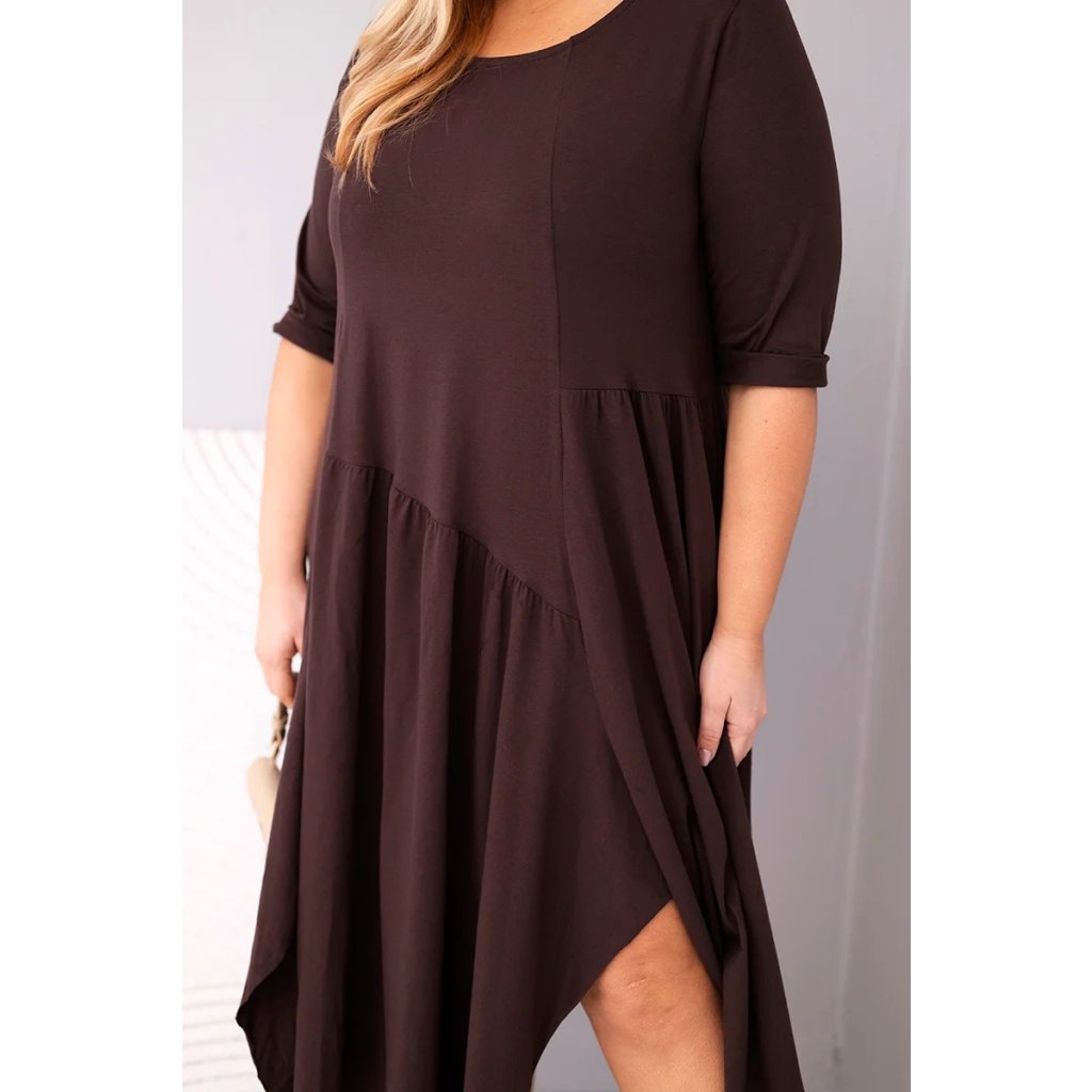 Dámské bavlněné Plus Size šaty s asymetrickým lemem hnědé