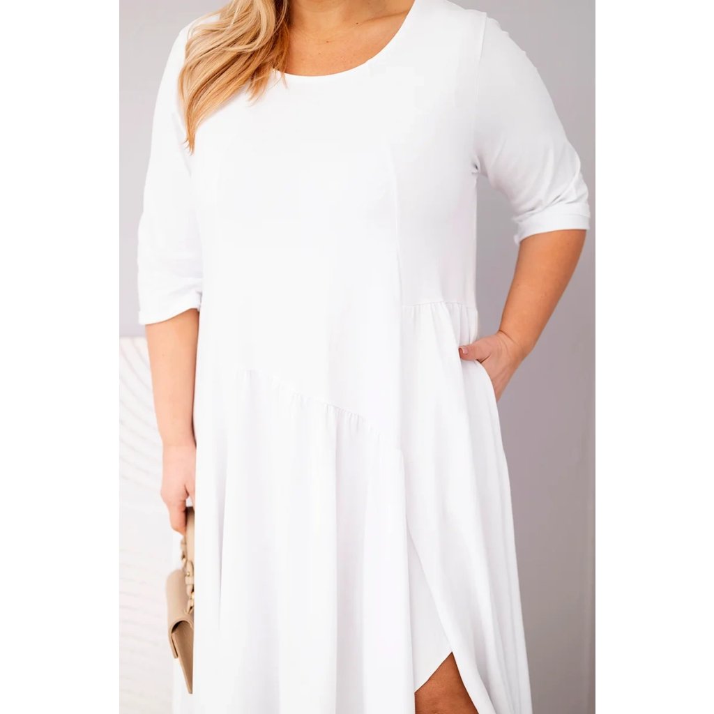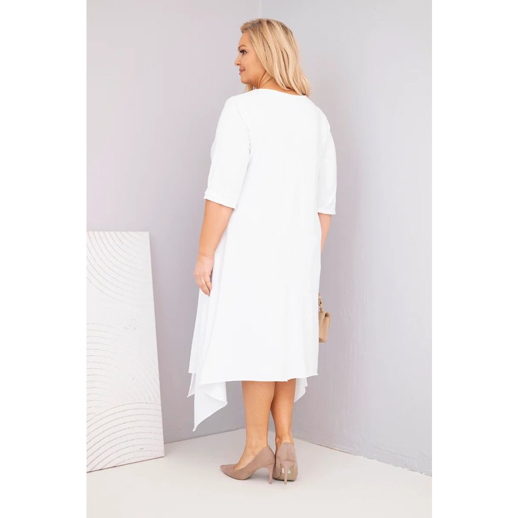 Dámské bavlněné Plus Size šaty s asymetrickým spodním lemem bílé
