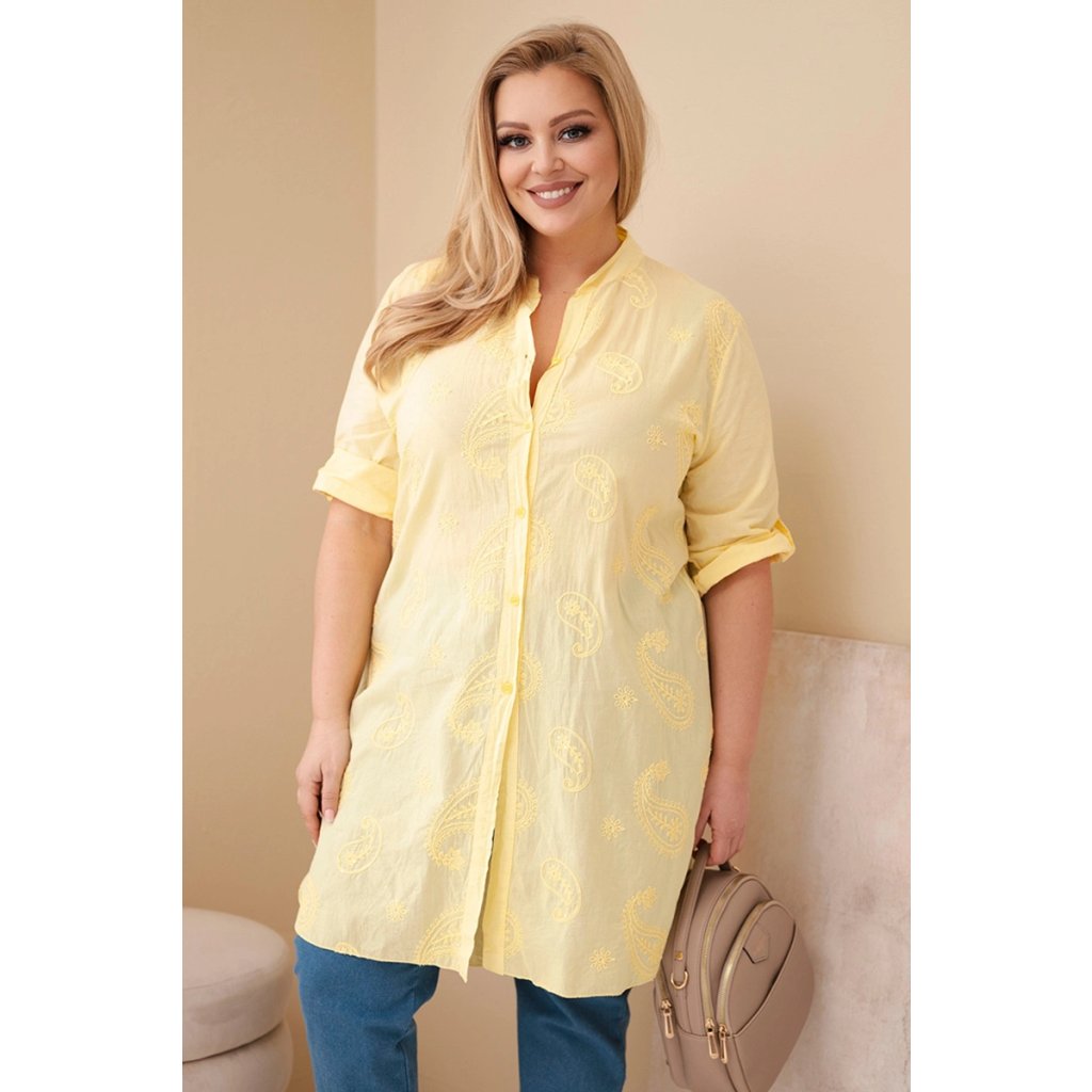Dámské košilové Plus Size šaty s vyšíváním žluté