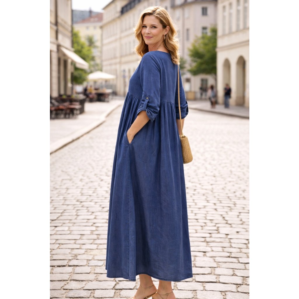 Tyto jeans šaty z lehké džínoviny kombinují nadčasový vzhled denimu s maximálním komfortem. Díky univerzální velikosti pohodlně sedí na S–XXL a nabídnou dostatek prostoru i pro vrstvení. Velkým benefitem jsou boční kapsy, které oceníte v běžném dni, a také rukávy s možností regulace, díky nimž si snadno přizpůsobíte outfit podle počasí nebo stylu.