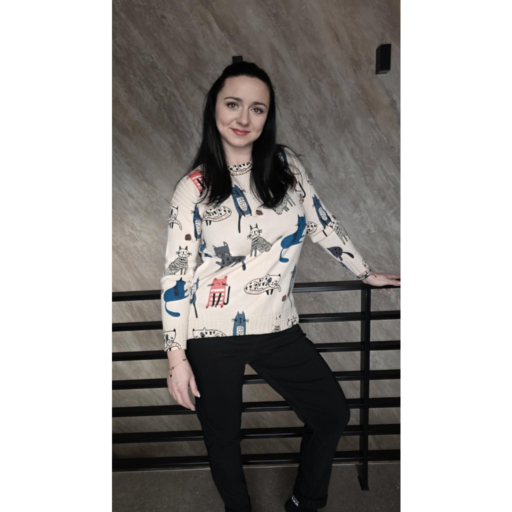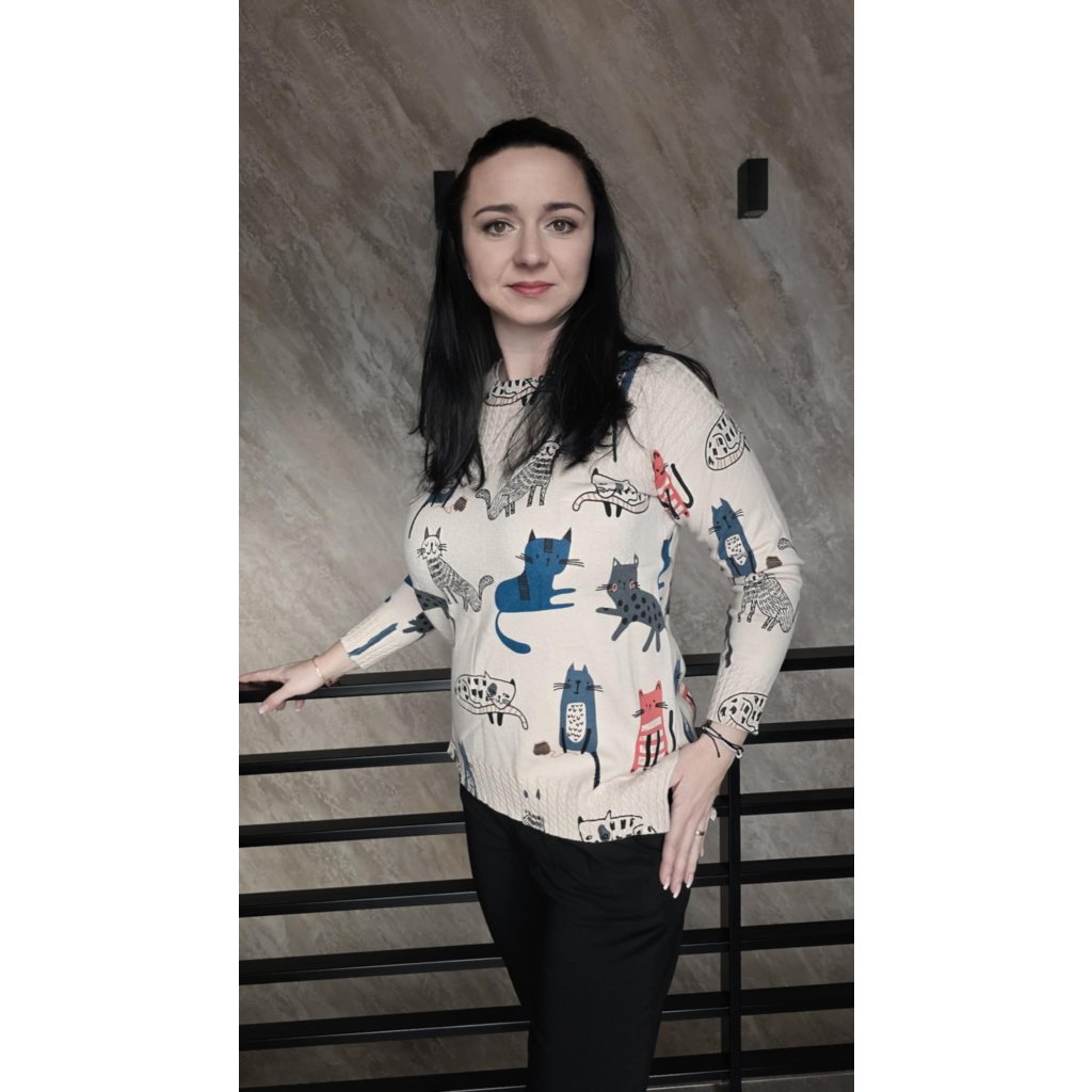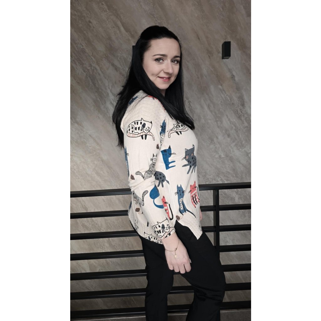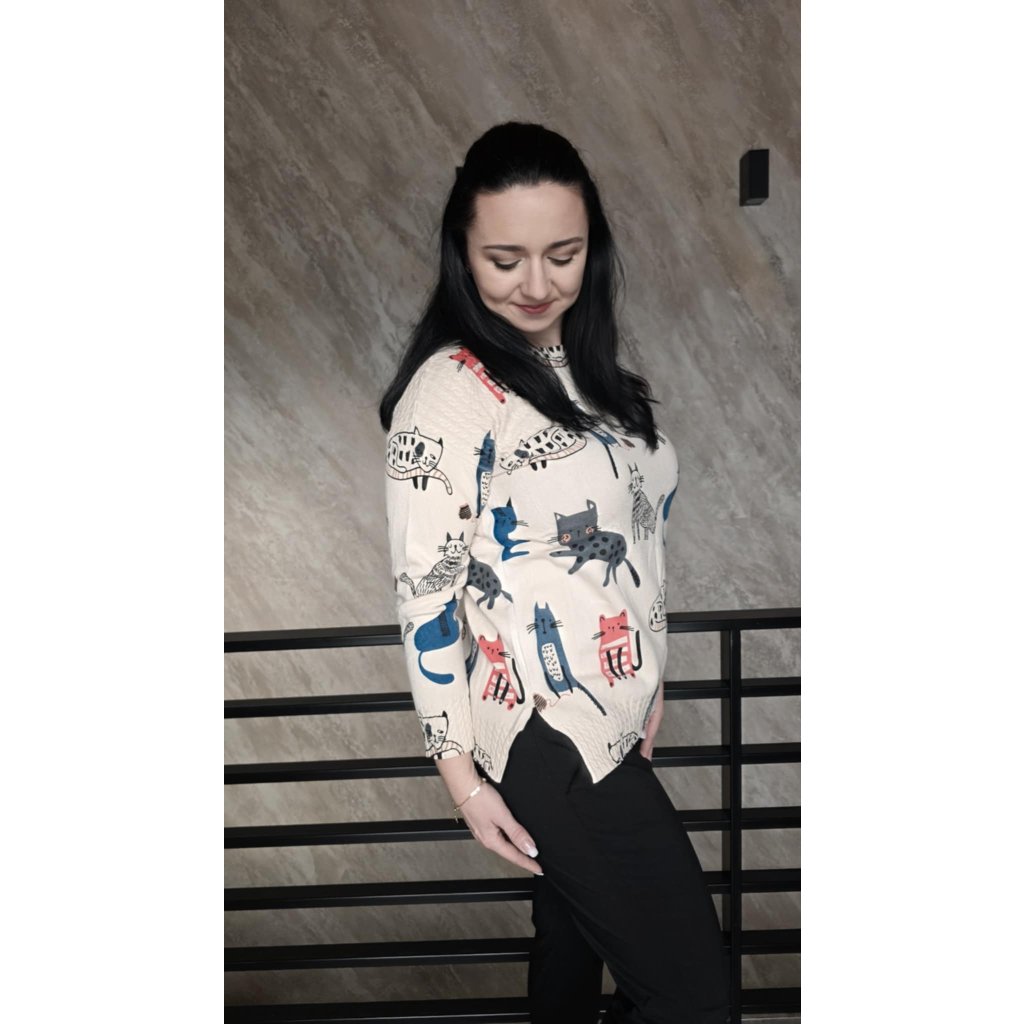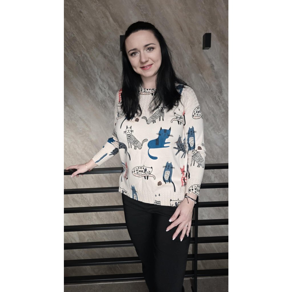 Dámský svetr Kočičky béžový Měkký úplet, krátké rozparky, UNI XS–L