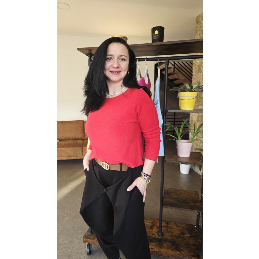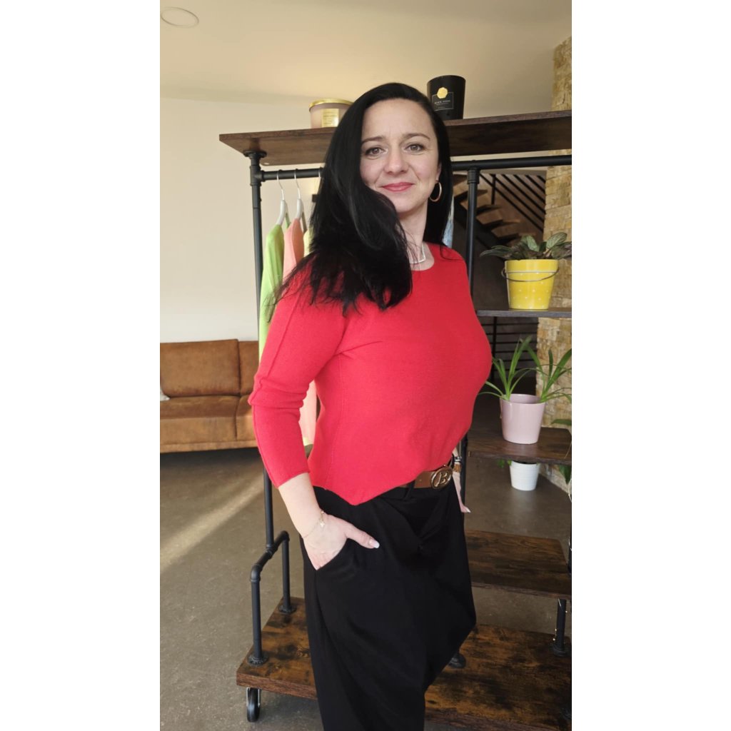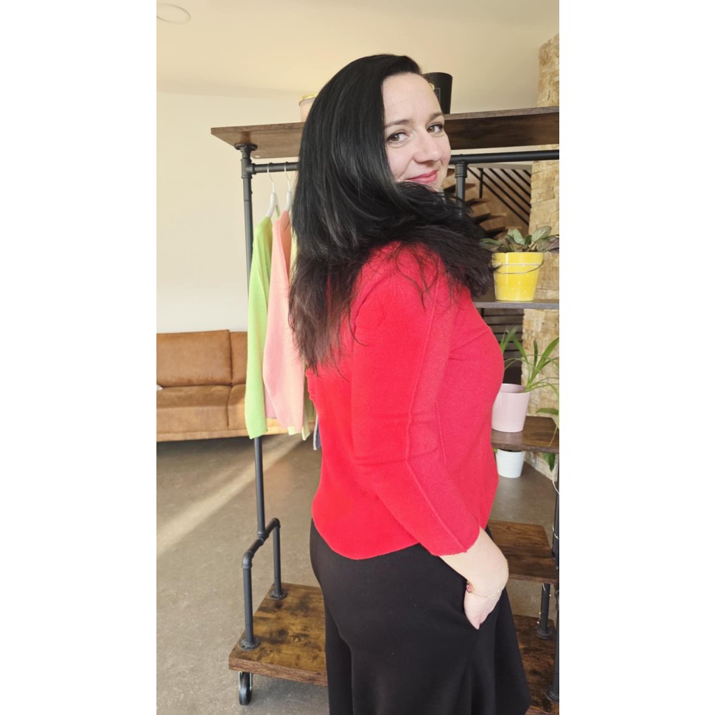 Slabý svetřík LEVA červený uni XS–XL • 9 barev • viskóza • prsa 110–120 cm • délka 58 cm