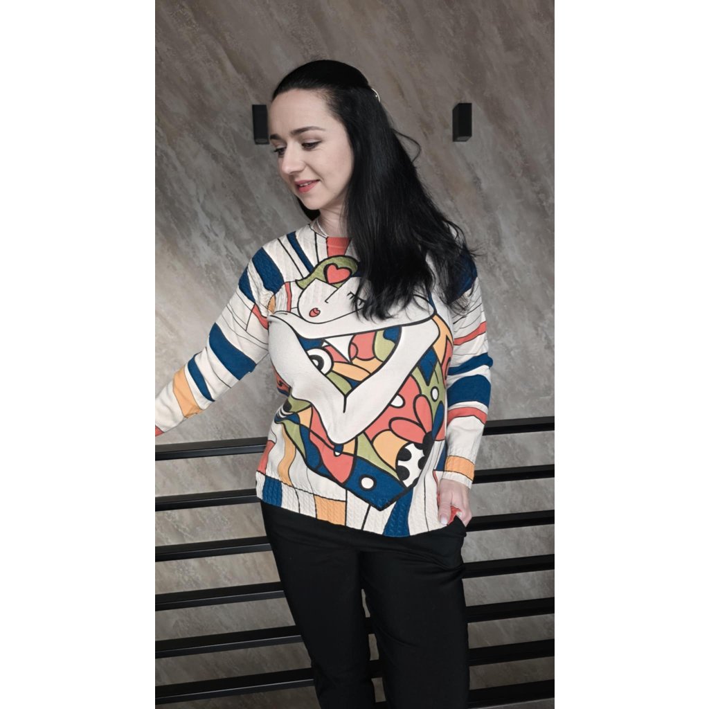 Svetr Barevné vzory béžový Výrazný vzor, měkký úplet, UNI XS–L