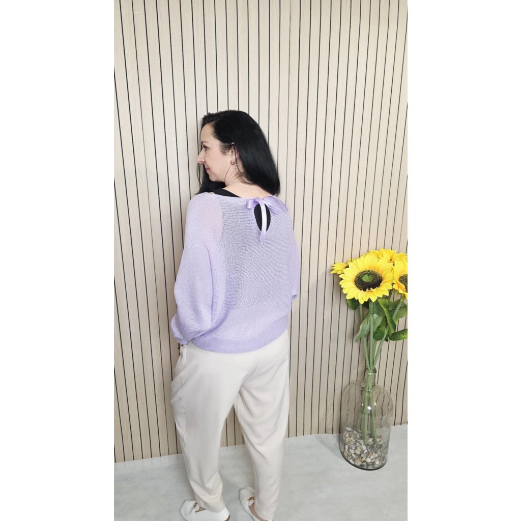 Svetřík s mašlí fialový s mašlí na zádech