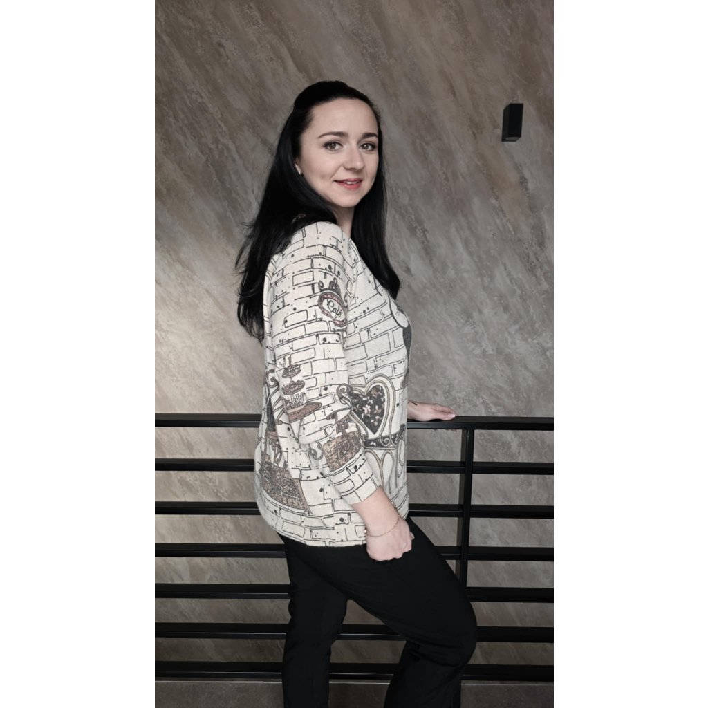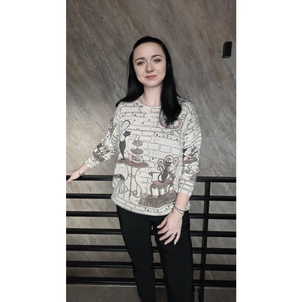 Tento volný svetr se vzorem koček je skvělý kousek pro ženy, které chtějí komfort a zároveň originální motiv. Jemně hřejivý úplet s příměsí angory je příjemný na dotek a volnější střih lichotí postavě – svetr se dobře kombinuje s legínami, úzkými kalhotami i džínami. Vzor s kočičkami dodává modelu hravý, stylový vzhled.