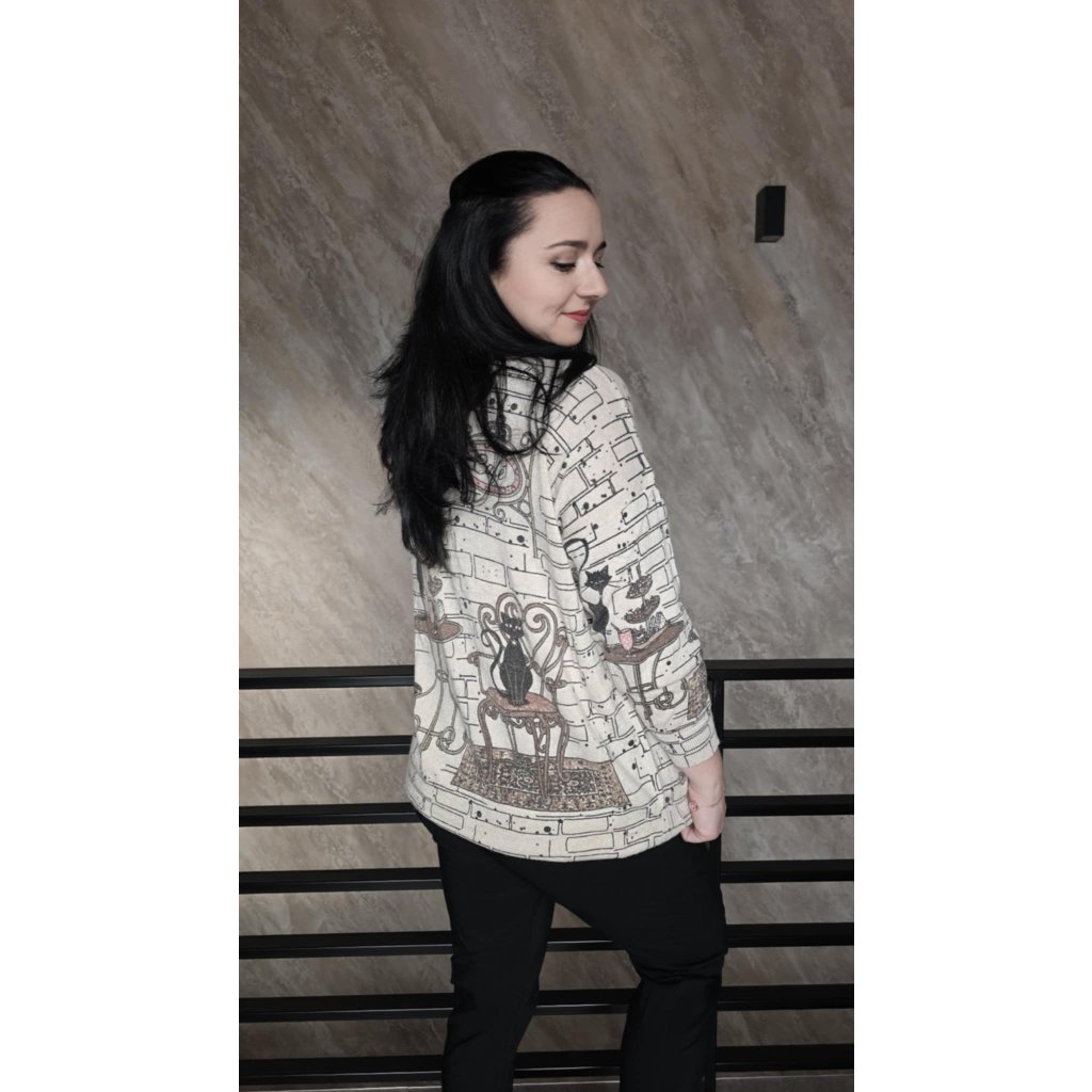 Volný svetr Kočky béžový Měkký úplet s angorou, volný střih