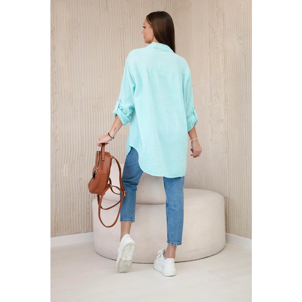 Oversize bavlněná mušelínová košile je ideální volbou pro ženy, které ocení pohodlí a styl. Vyrobeno ze vzdušného, prodyšného mušelínu, zajišťuje maximální komfort nošení zejména v teplejších dnech. Díky oversized střihu je neuvěřitelně univerzální – můžete ho nosit volně, převázaný páskem nebo jako lehkou zavinovačku. Košile se perfektně hodí jak k džínům, tak k elegantním kalhotám nebo sukni, takže bude fungovat v mnoha stylech - od každodenních až po sofistikovanější. Jemná struktura mušelínu mu dodává jemnou eleganci a přírodní bavlna umožňuje pokožce dýchat. Nezbytné v každém šatníku – klasické, pohodlné a nadčasové. Perfektní pro každé roční období. Velikost je univerzální a sedne ženám ve velikostech S, M nebo L.