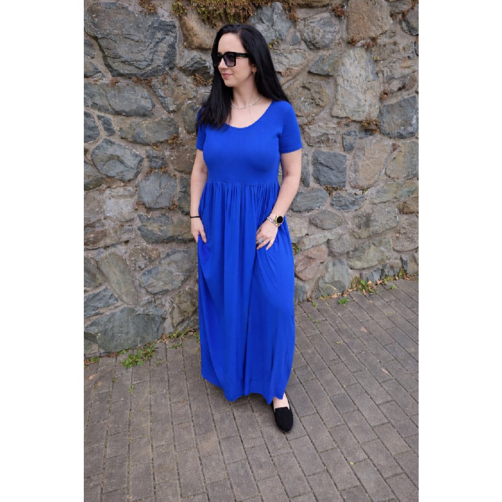 Dlouhé šaty PRIME královsky modré Bavlněné, žebrovaný vršek, vel. S-L