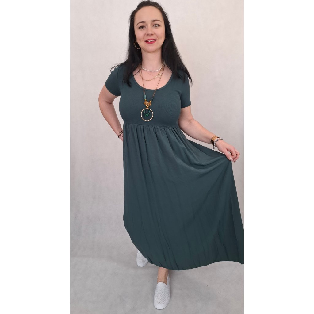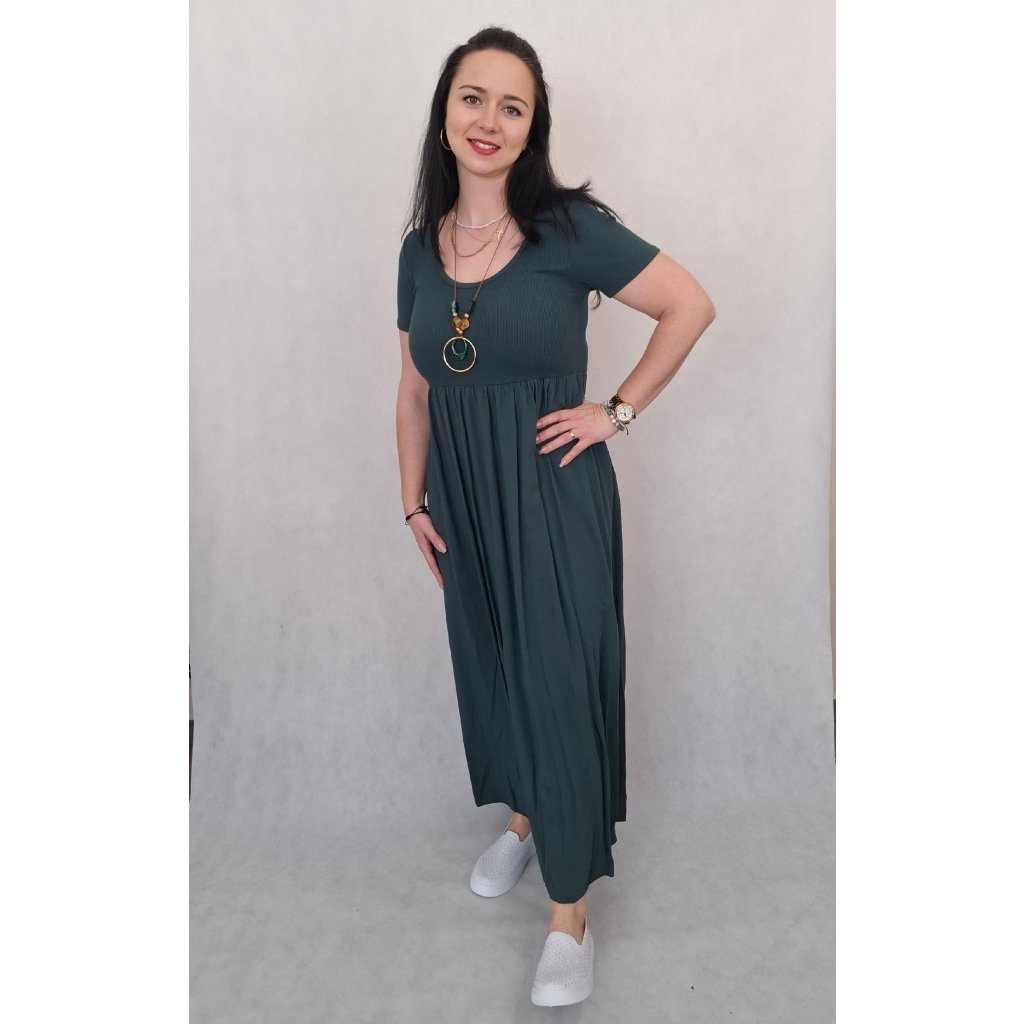 Dlouhé šaty PRIME tmavě zelené dlouhé dámské šaty s žebrovaným topem