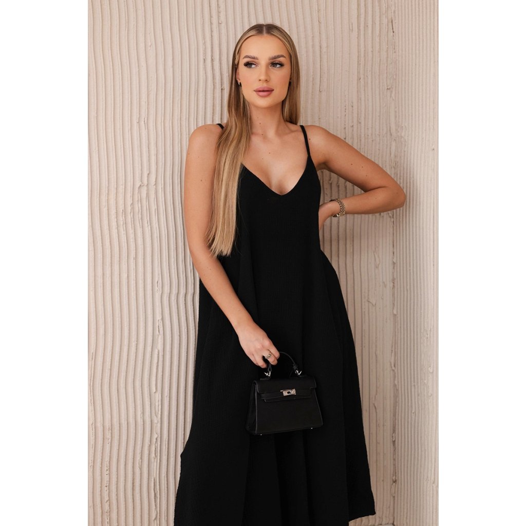 Mušelínové šaty na ramínka černé
