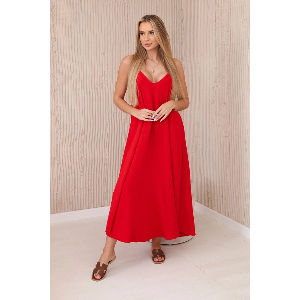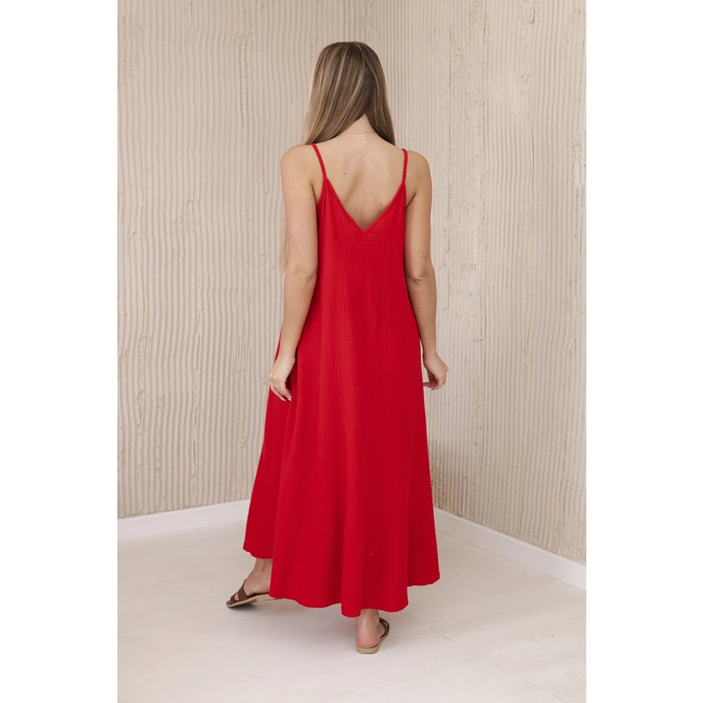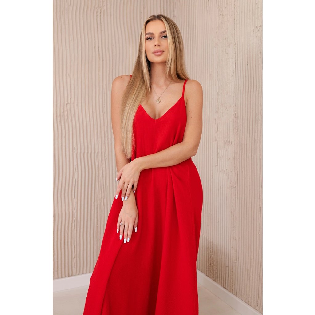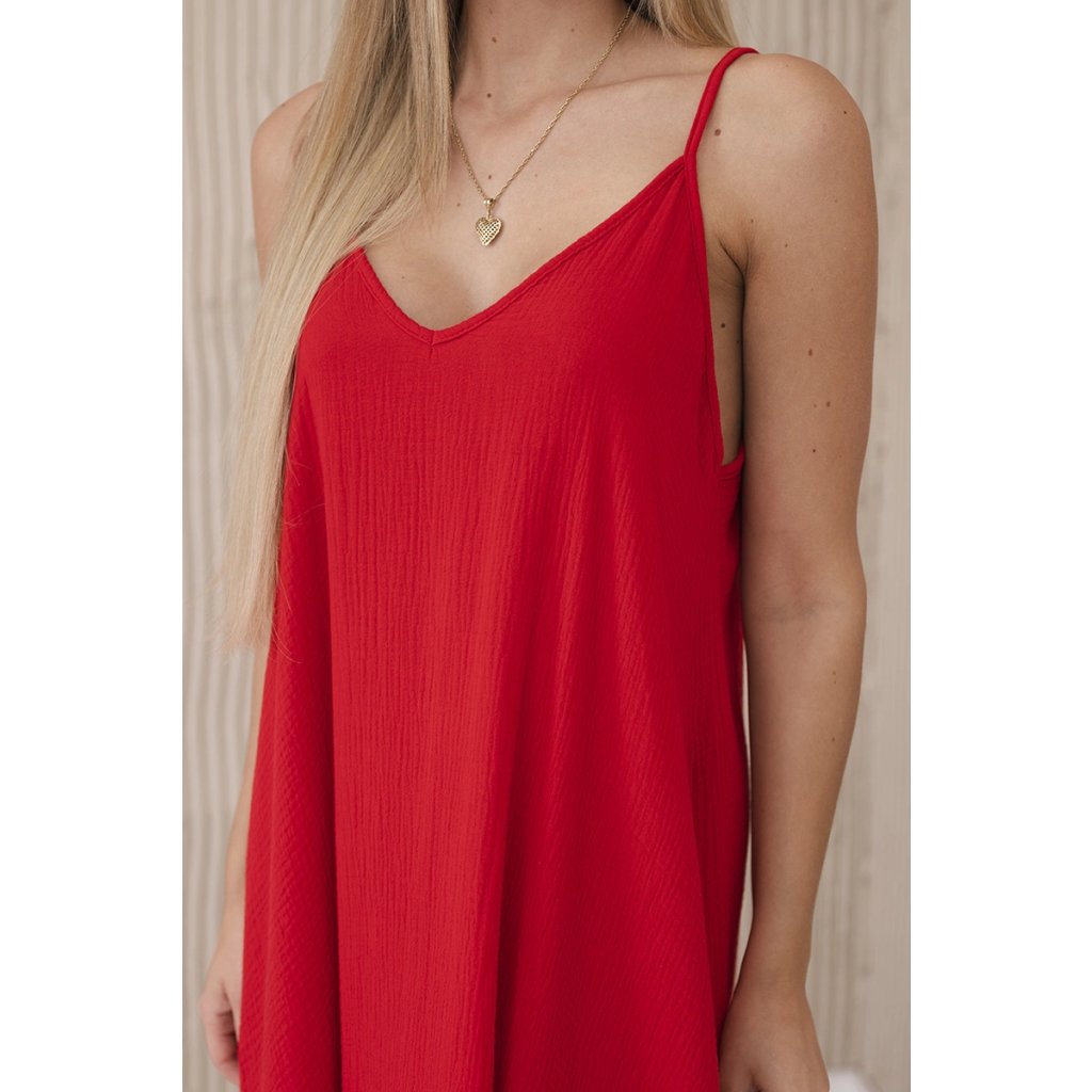Mušelínové šaty na ramínka červené