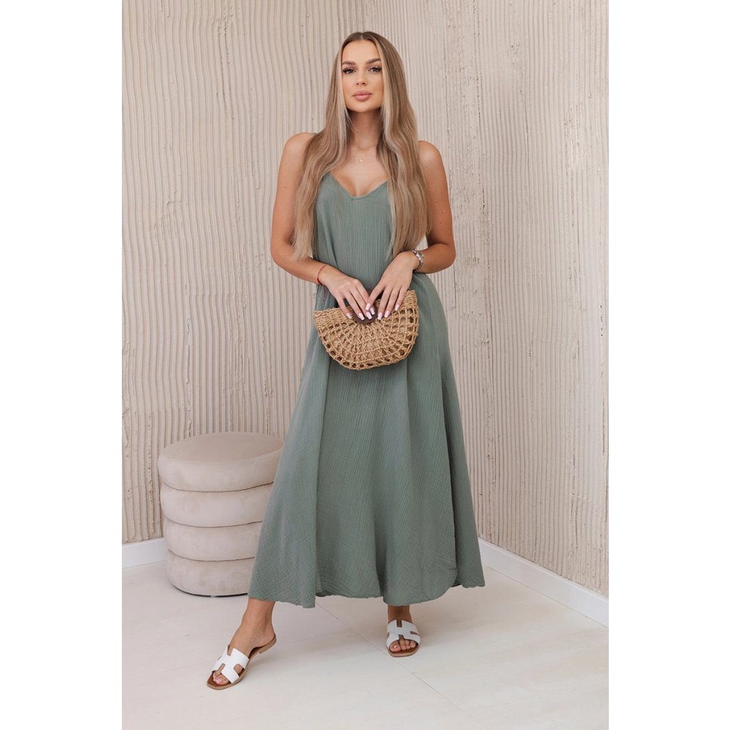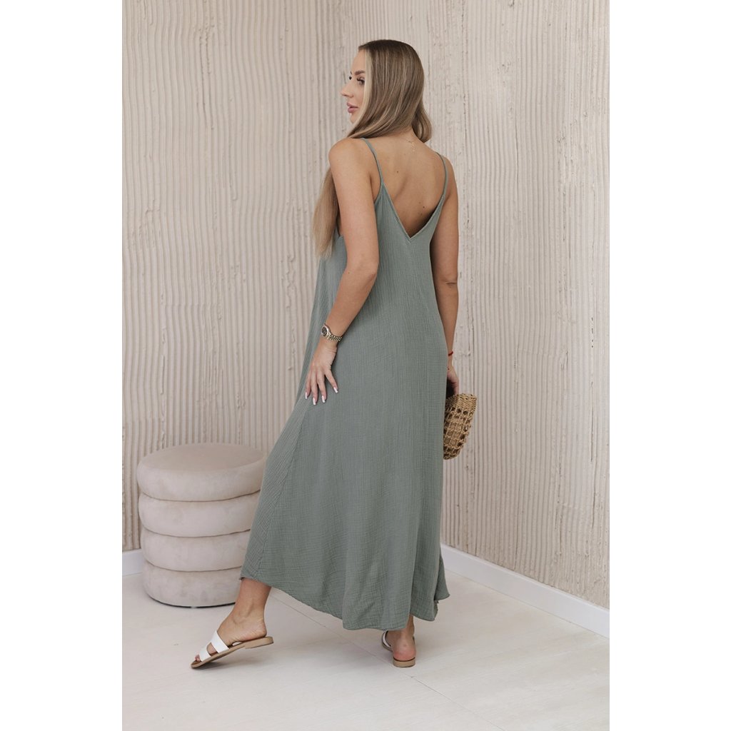 Mušelínové šaty na ramínka khaki