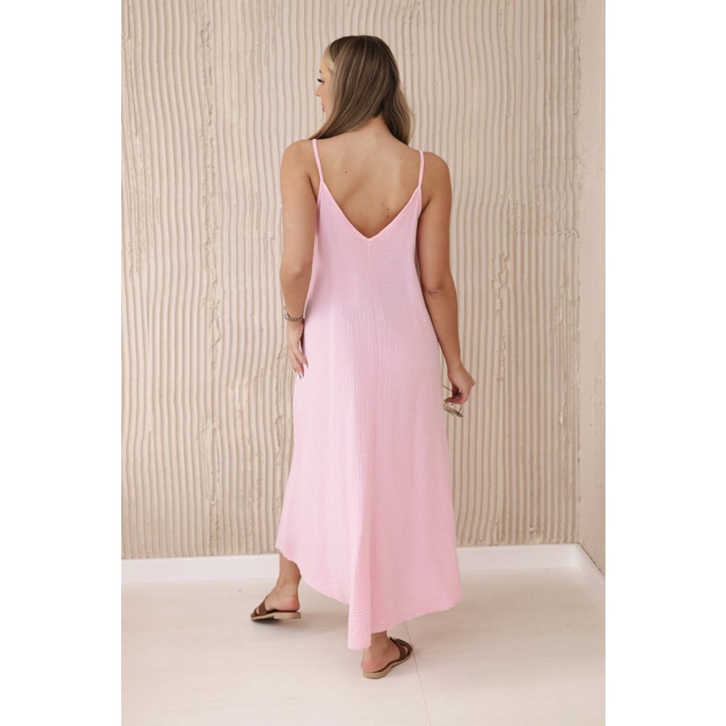 Mušelínové šaty na ramínka světle růžové