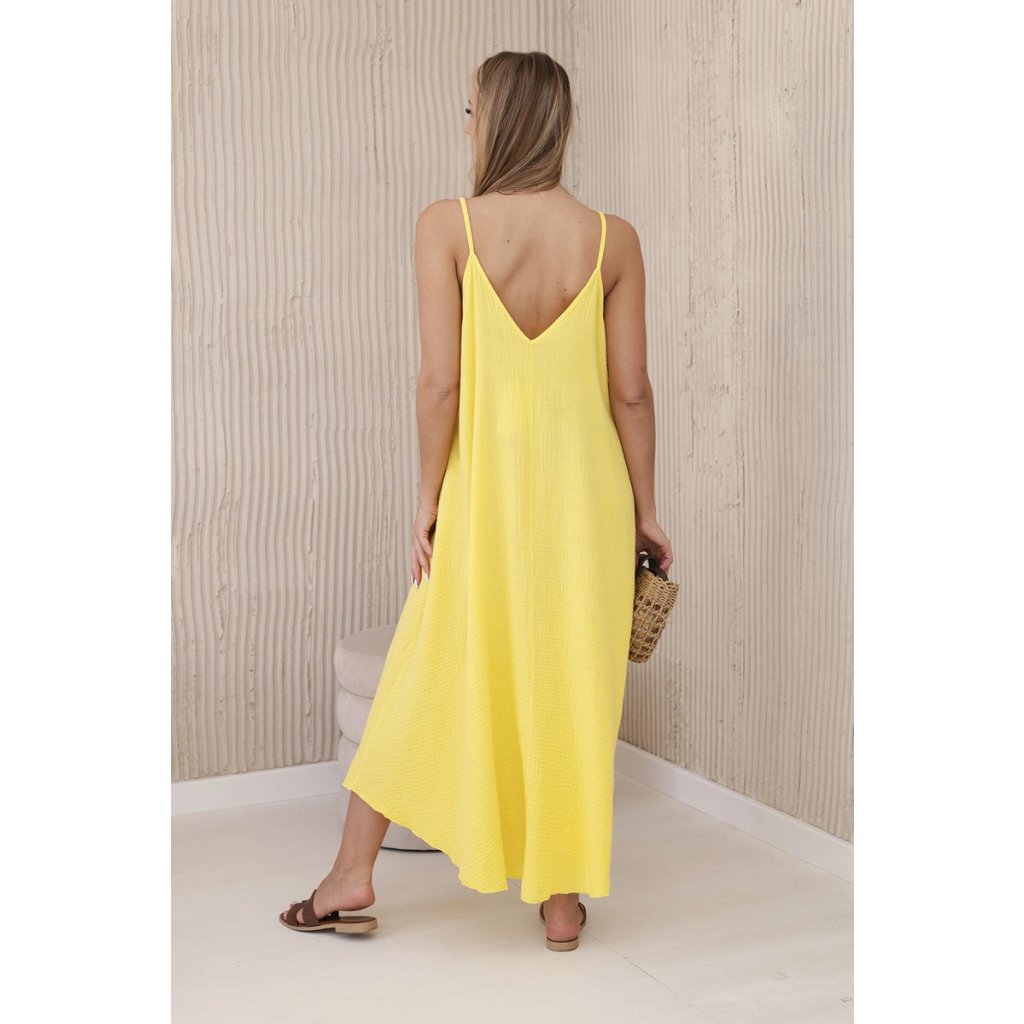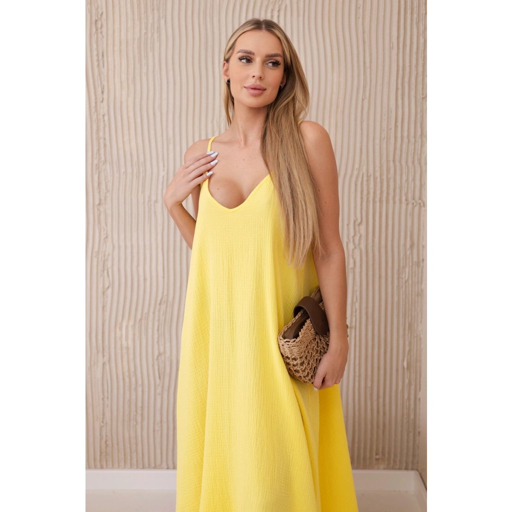 Mušelínové šaty na ramínka jsou letní a lehkou volbou, která spojuje svobodu a ženský šarm. Tyto šaty, vyrobené z jemného mušelínového materiálu, se pohodlně nosí i v těch nejteplejších dnech. Ramínka dodávají celému stylingu lehkost a zároveň zvýrazňují krk a ramena. Ideální na procházky po pláži, večerní výlety nebo letní setkání s přáteli. Mušelínové šaty na ramínka se díky své všestrannosti a pohodlí stanou nenahraditelným prvkem vašeho letního šatníku a dodají vašim letním stylům šarm a šarm. Velikost je univerzální a bude vhodná pro ženy, které nosí velikost S, M nebo L.