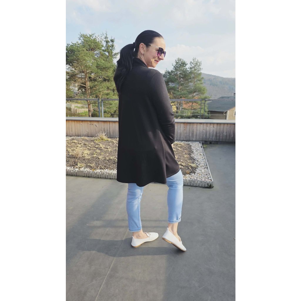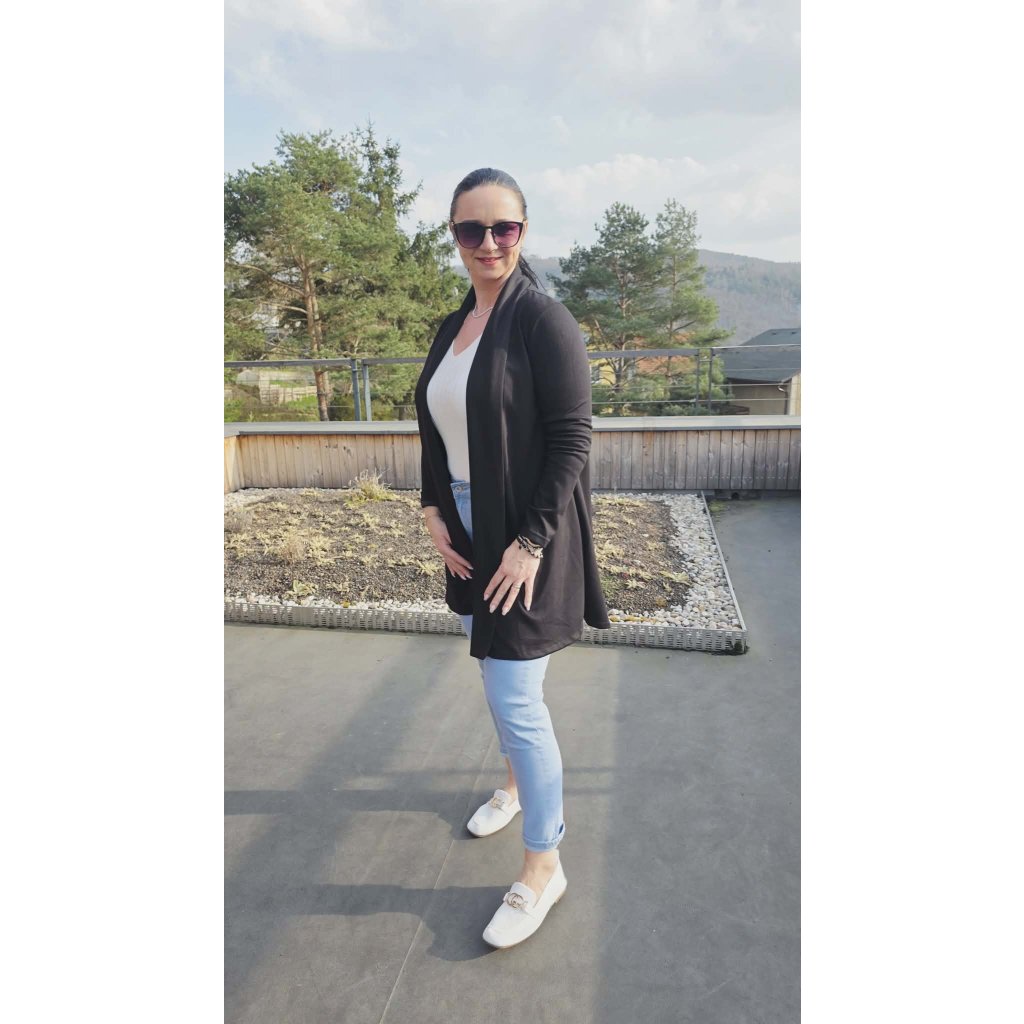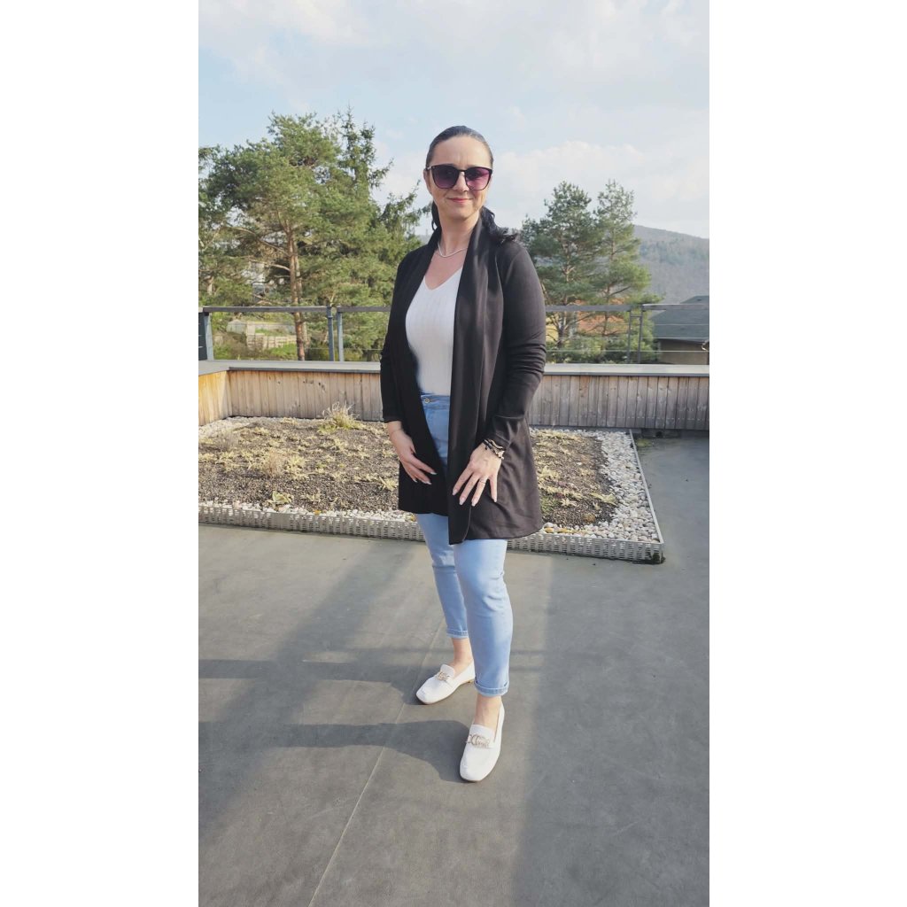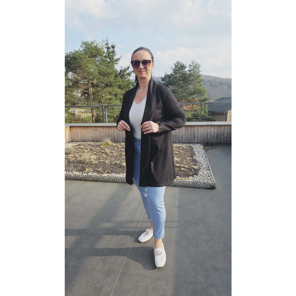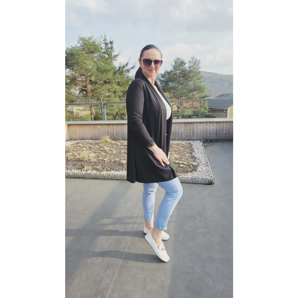 Luxusní kardigan LASKA černý Elegantní splývavý střih