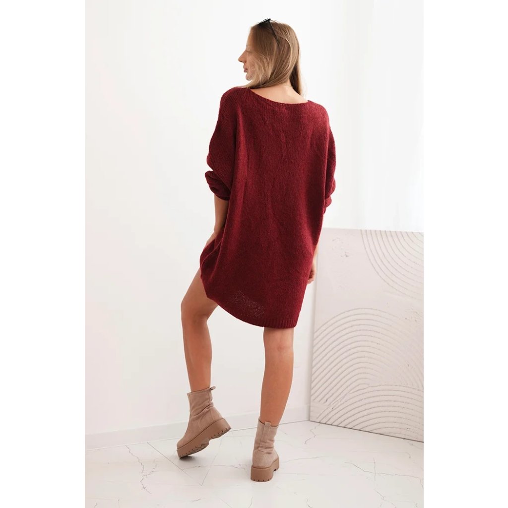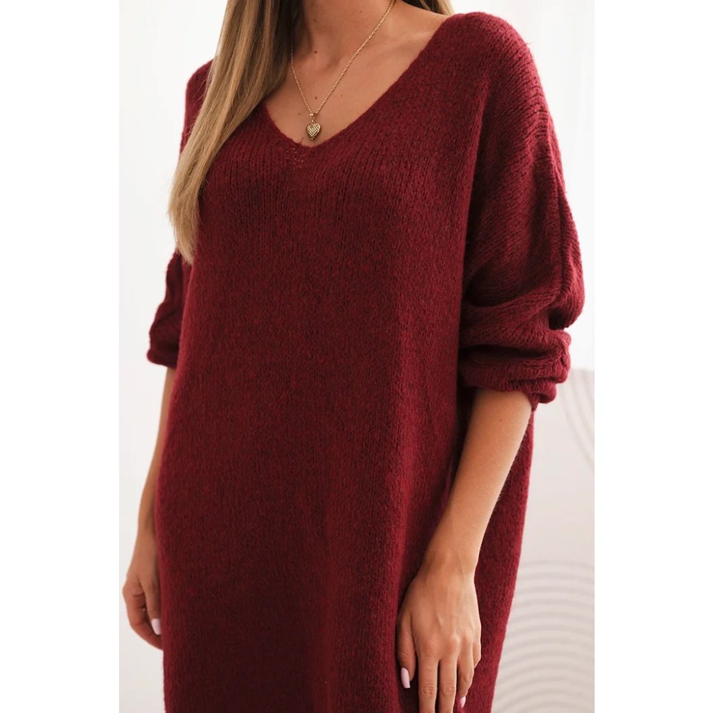 Dámské plus size pletené šaty s výstřihem do V bordó