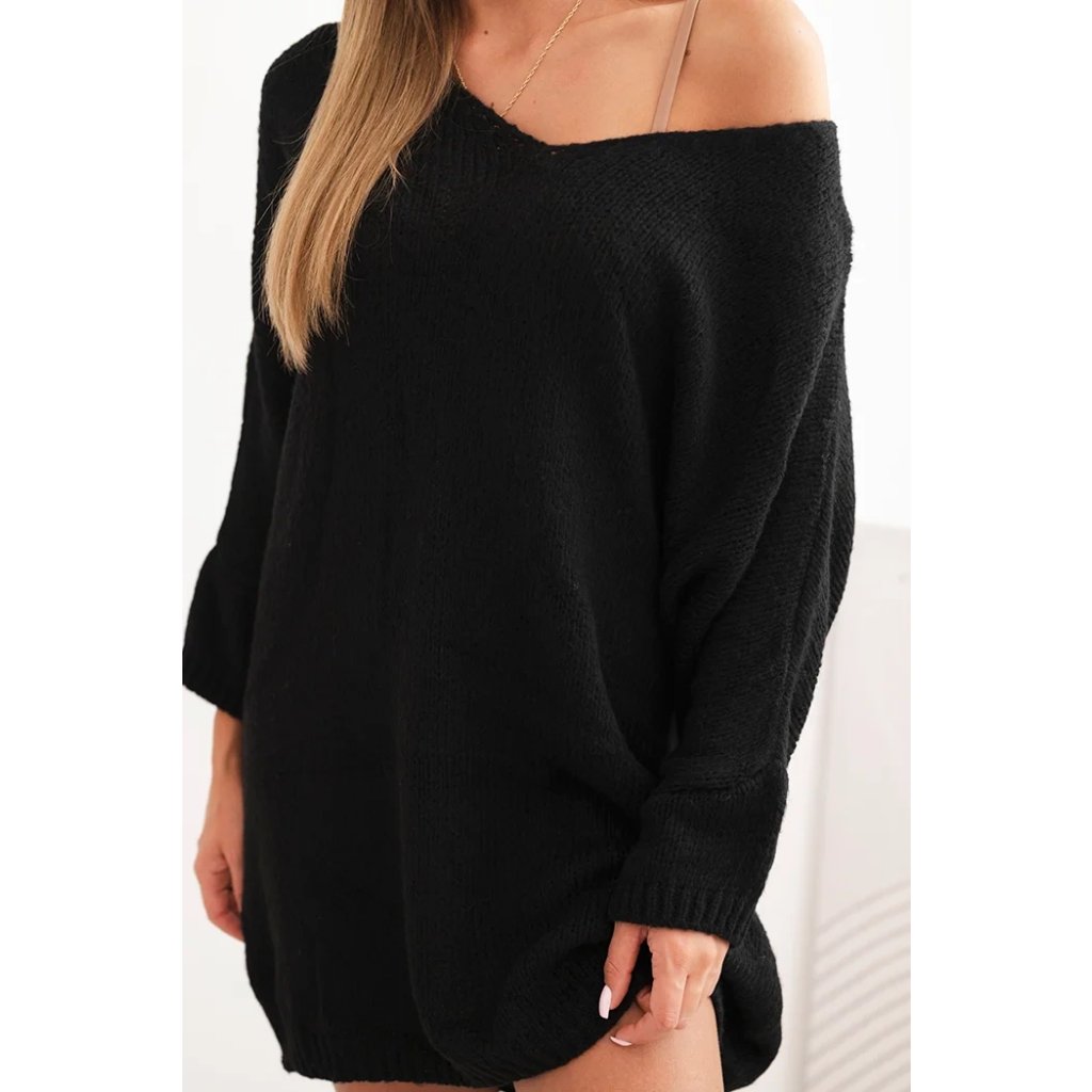 Dámské plus size pletené šaty s výstřihem do V černé