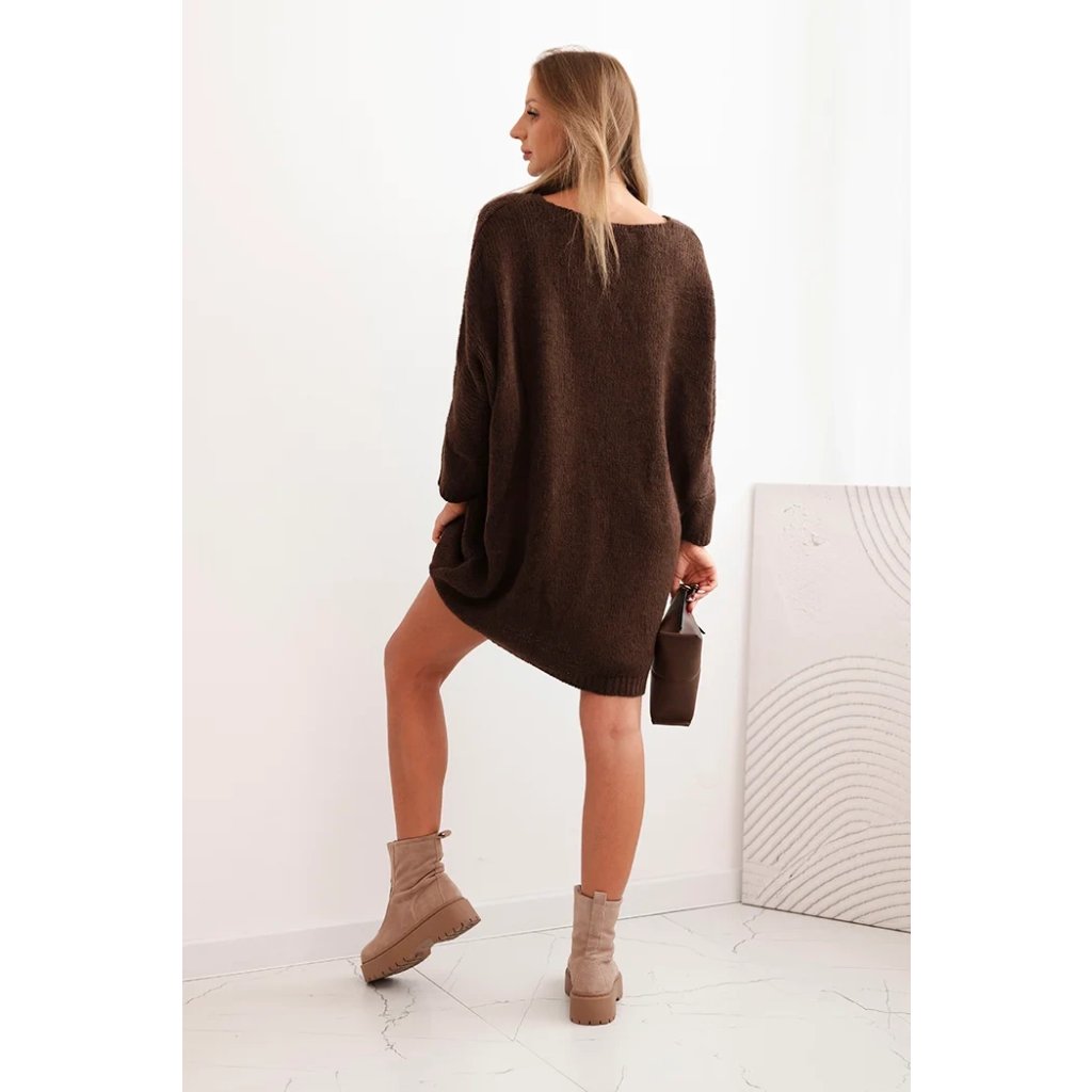 Dámské plus size pletené šaty s výstřihem do V hnědé
