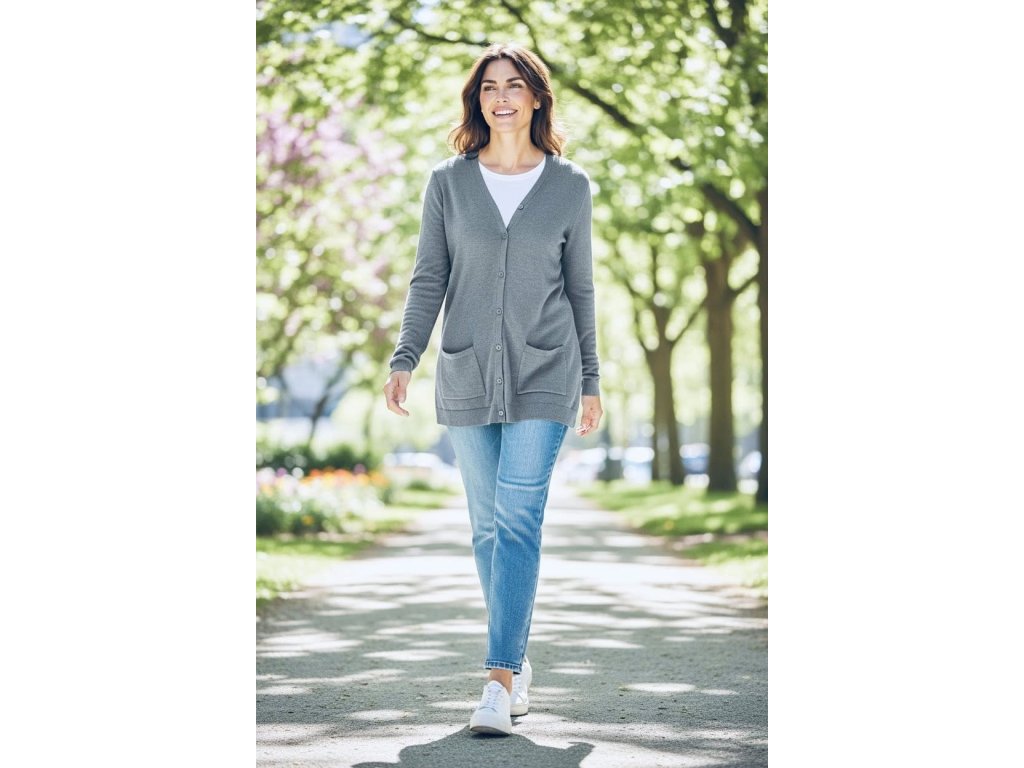 Stylový dlouhý svetr na knoflíky s kapsami – ideální pro chladnější dny. Díky univerzální velikosti (sedí na M–XXL) se pohodlně přizpůsobí různým postavám. Materiál s vysokým podílem modalu a viskózy je měkký, příjemný na dotek a dobře drží tvar.
