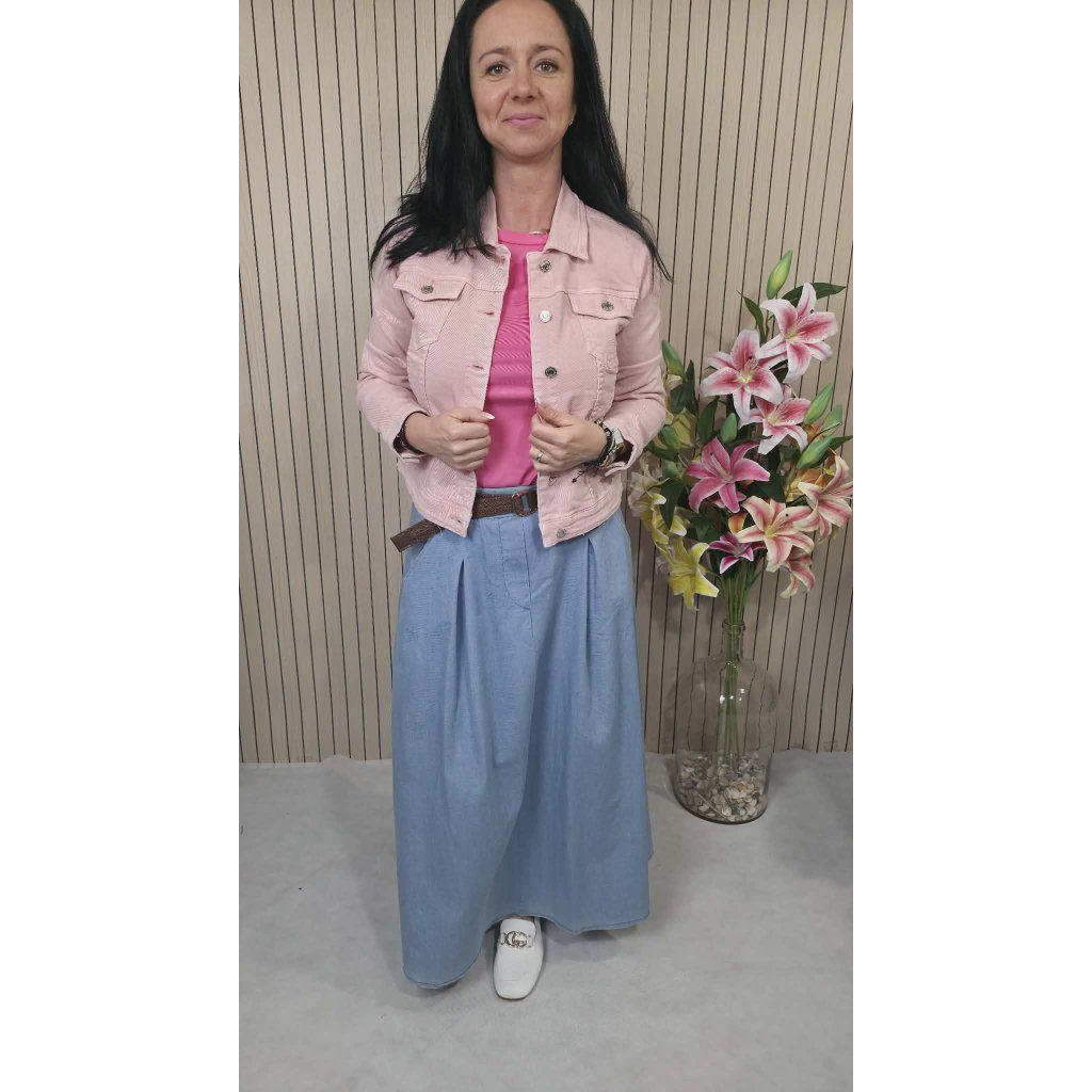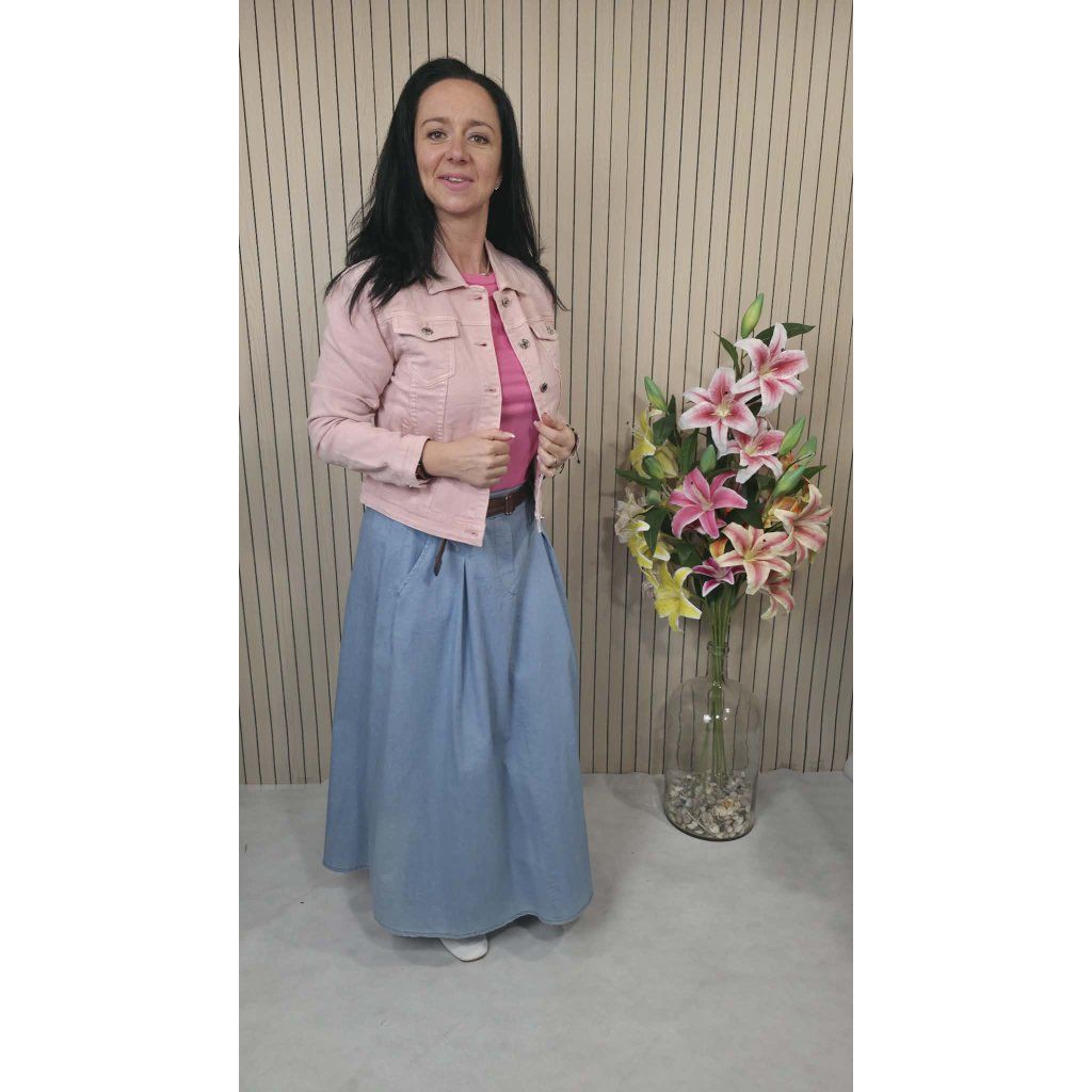 Tato dlouhá džínová sukně je neuvěřitelně variabilní. Pro volný čas ji doplňte jednoduchým tričkem a džínovou bundičkou. Pokud chcete vytvořit elegantnější outfit do práce nebo na schůzku, vsaďte na halenku zastrčenou dovnitř, čímž zvýrazníte pas a opticky prodloužíte nohy. Díky lehké gramáži materiálu je vhodná pro celoroční nošení – od jarních dnů až po babí léto.