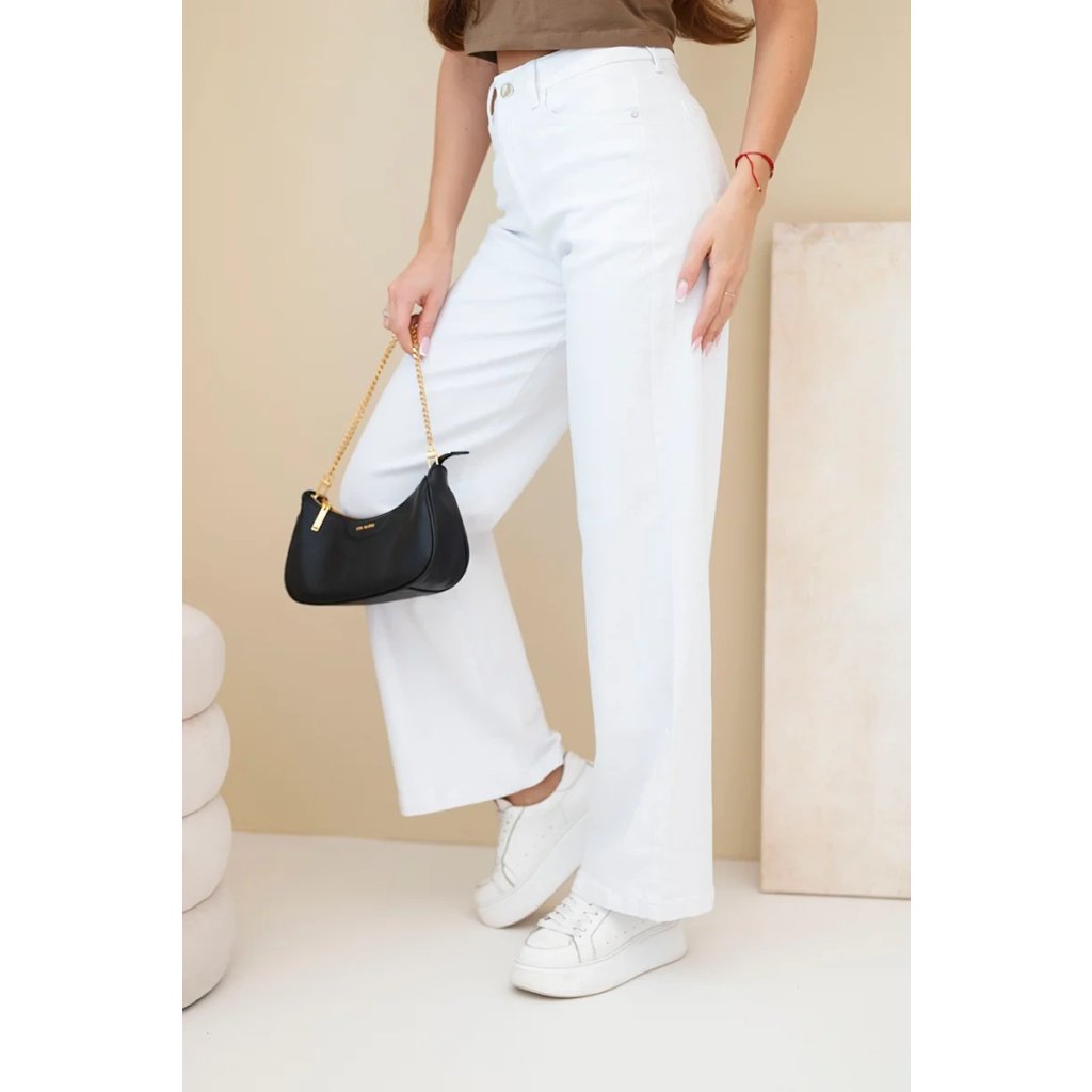Dámské džíny s širokými nohavicemi a vysokým pasem bílé