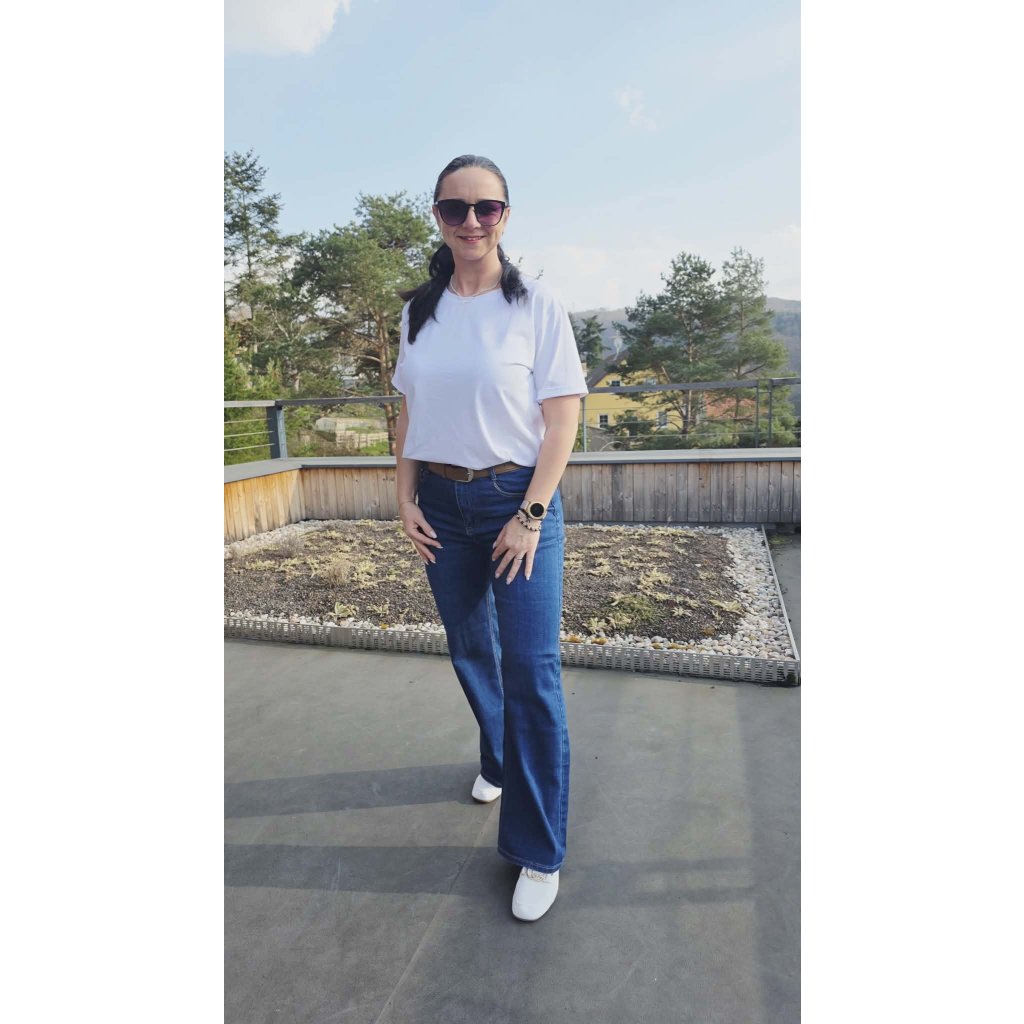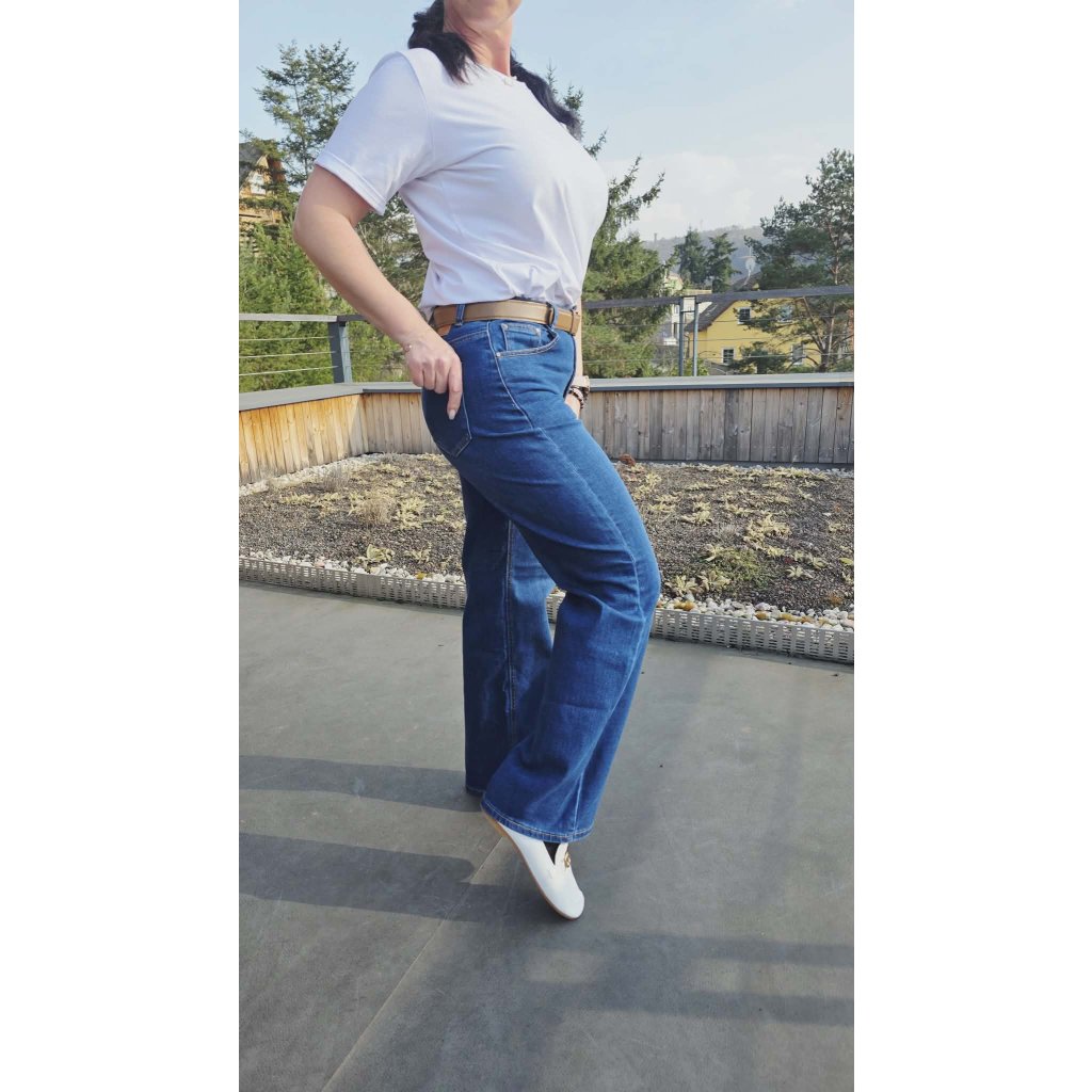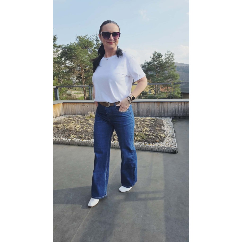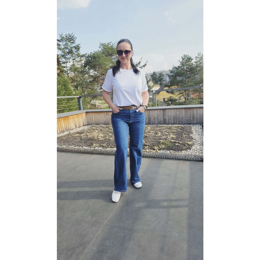 Džíny mají pevný pas s poutky na pásek, klasické kapsy vpředu i vzadu a zapínání na zip s knoflíkem. Skvěle se kombinují s rolákem, košilí nebo svetrem – vytvoříte s nimi jak ležérní, tak elegantní look.
