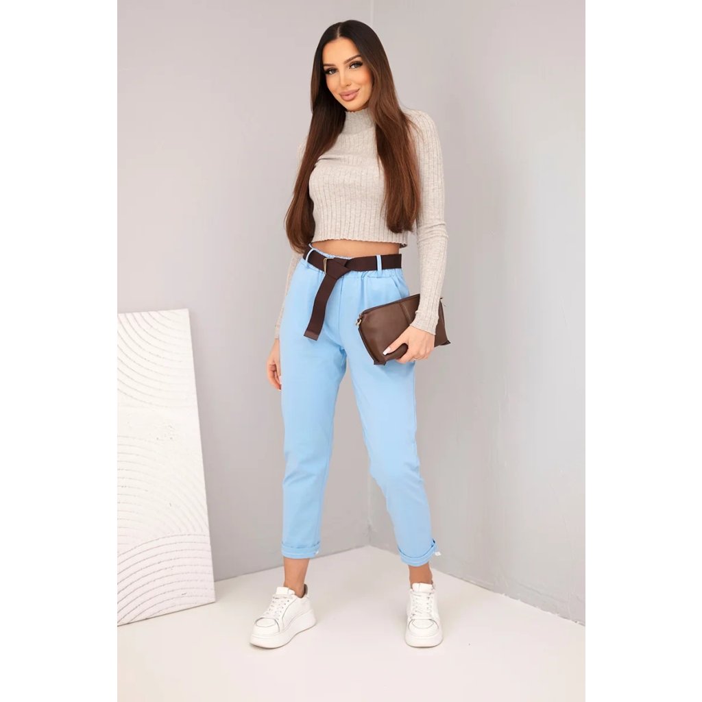 Módní a pohodlné dámské kalhoty s páskem jsou ideální volbou pro ženy, které ocení styl a komfort. Vyrobeny z vysoce kvalitního materiálu, zajišťují svobodu pohybu a dokonalé přizpůsobení postavě. Mají elastický pas a praktický pásek, který zvýrazňuje pas. Jejich klasický střih s ohrnutým nohavicím dělá, že se hodí jak pro každodenní, tak i pro elegantnější stylizace. Skvěle se hodí v kombinaci s košilí nebo lehkým svetrem. Velikost je univerzální a bude vhodná pro dámy ve velikosti S, M nebo L.