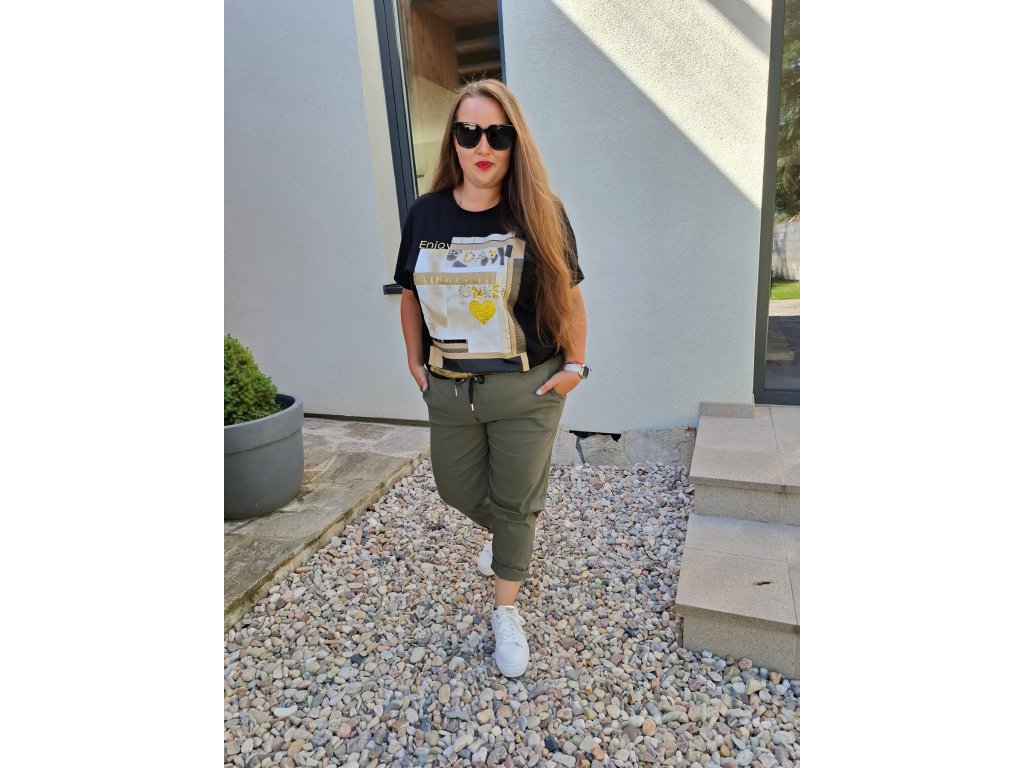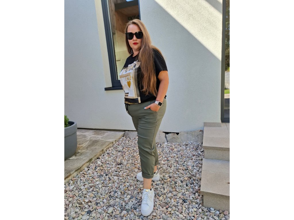 Velmi pohodlné kalhoty s pružným pasem na gumu, které se dokonale přizpůsobí postavě. Díky kvalitnímu a elastickému materiálu krásně sedí a zvýrazní siluetu, aniž by omezovaly v pohybu. Hodí se ke každodennímu nošení i jako základ pro elegantnější outfit. Dostupné ve třech velikostech, vhodné ke každému stylu.