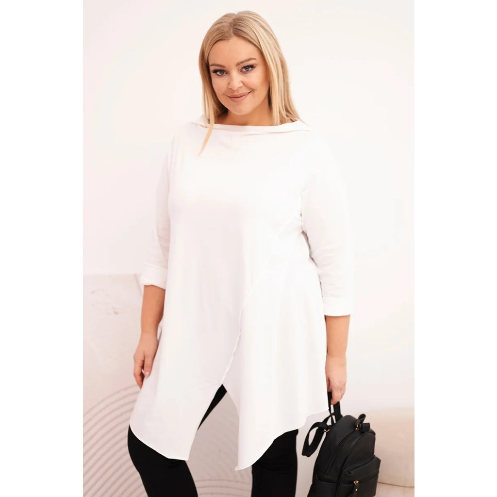 Dámská asymetrická bavlněná blůza Plus Size bílá