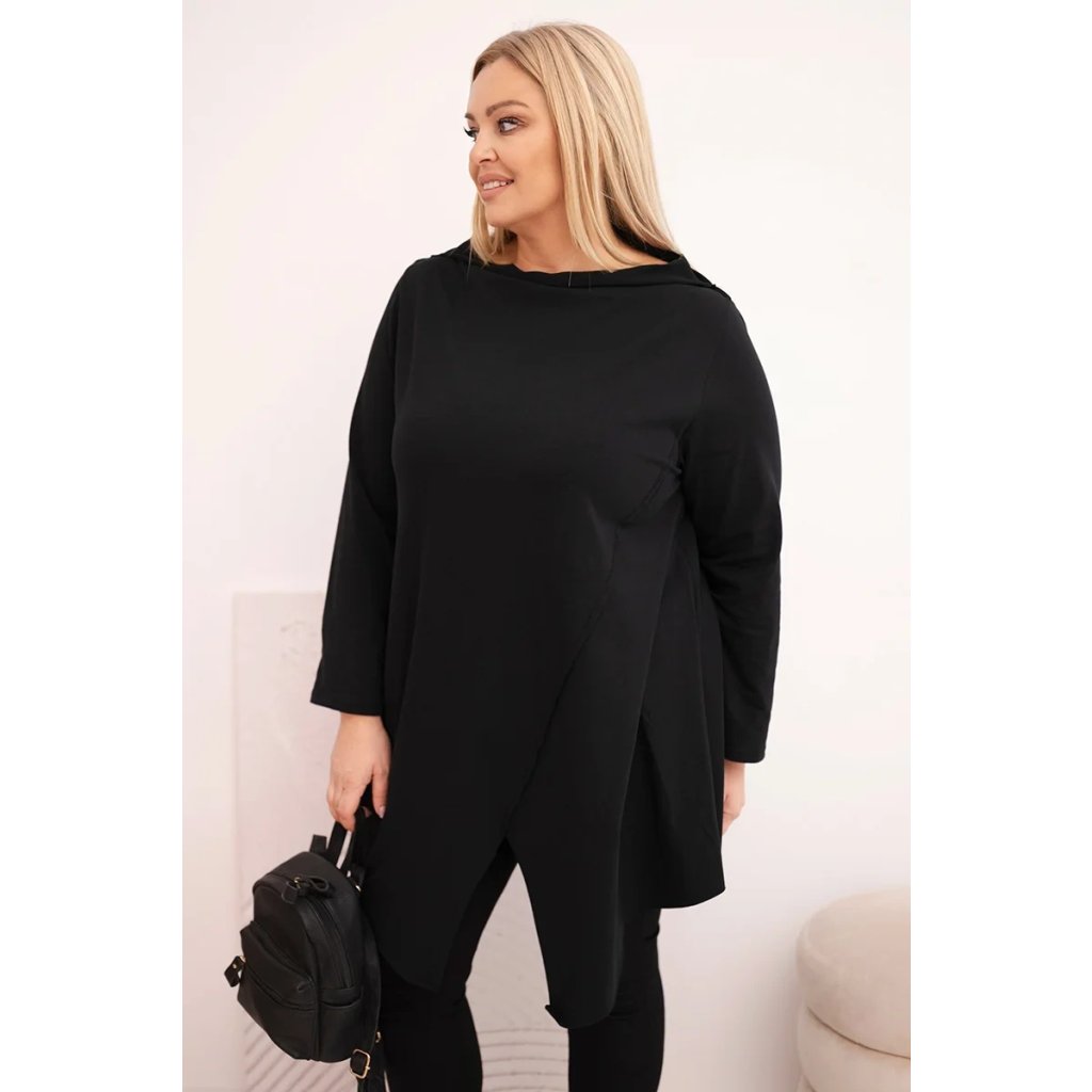 Dámská asymetrická bavlněná blůza Plus Size černá