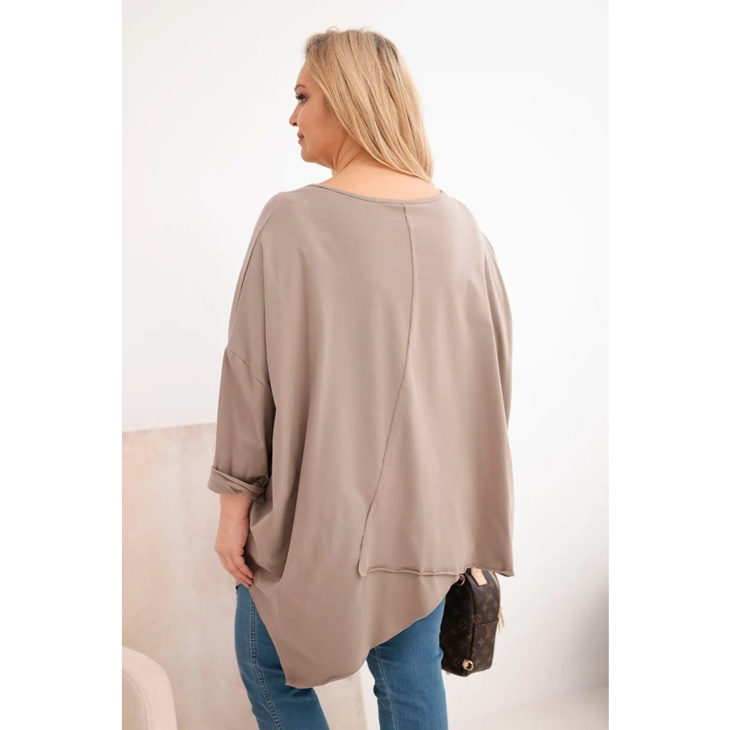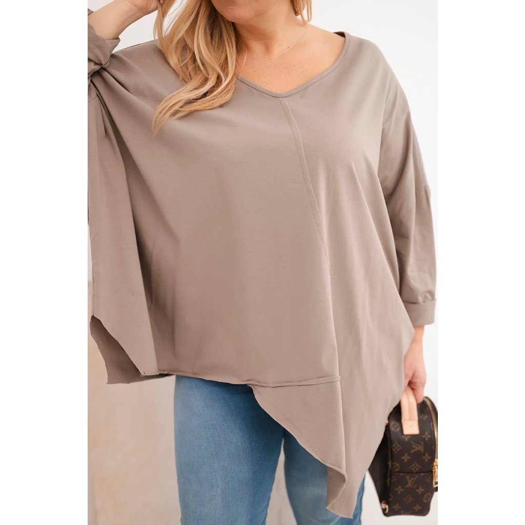 Dámská bavlněná blůza Plus Size s asymetrickým spodním lemem a V výstřihem fango