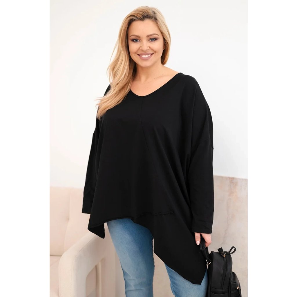 Dámská bavlněná blůza Plus Size s asymetrickým spodním lemem a výstřihem do V černá