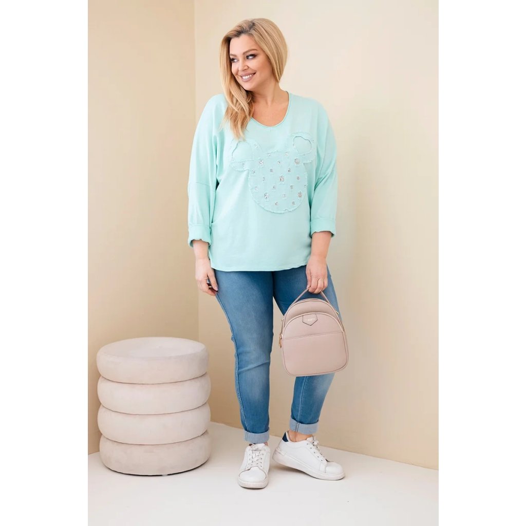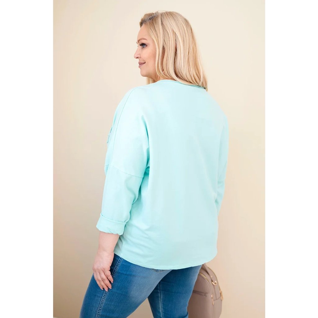 Dámská bavlněná blůza Plus Size s výstřihem do V mátová