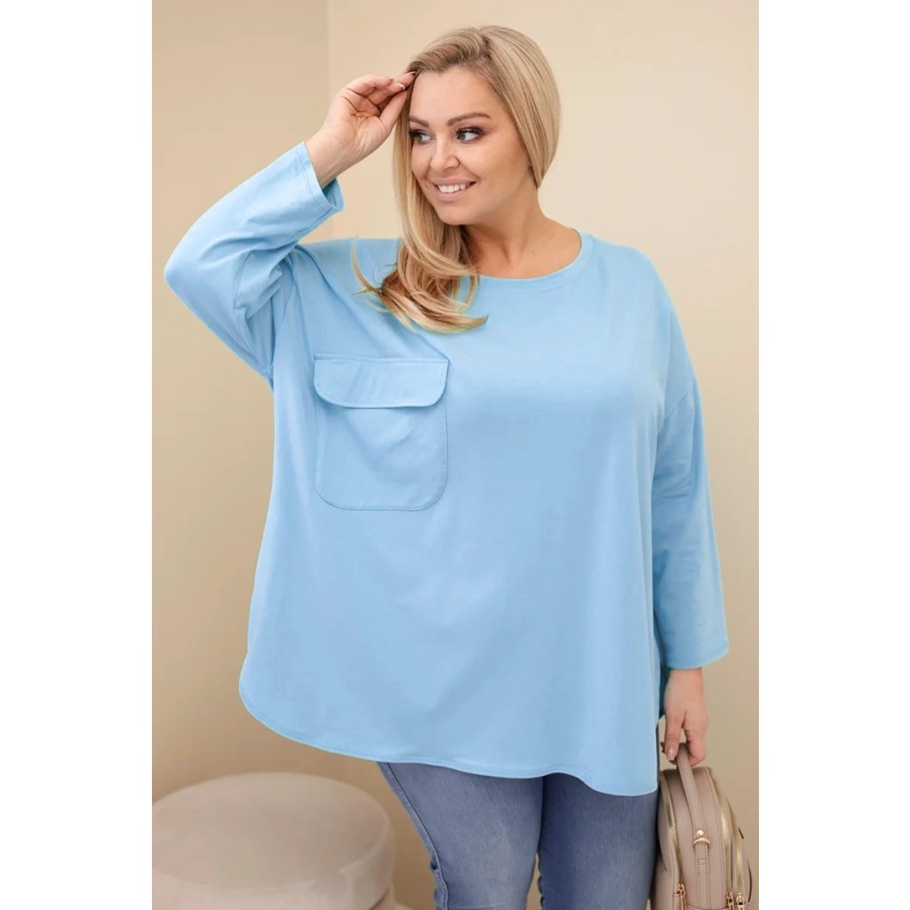 Dámská blůza Plus Size s bavlnou, kapsou a ohrnutým rukávem modrá