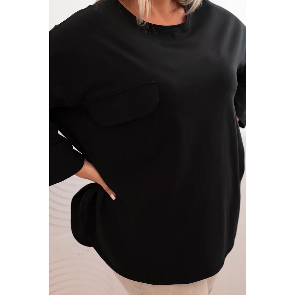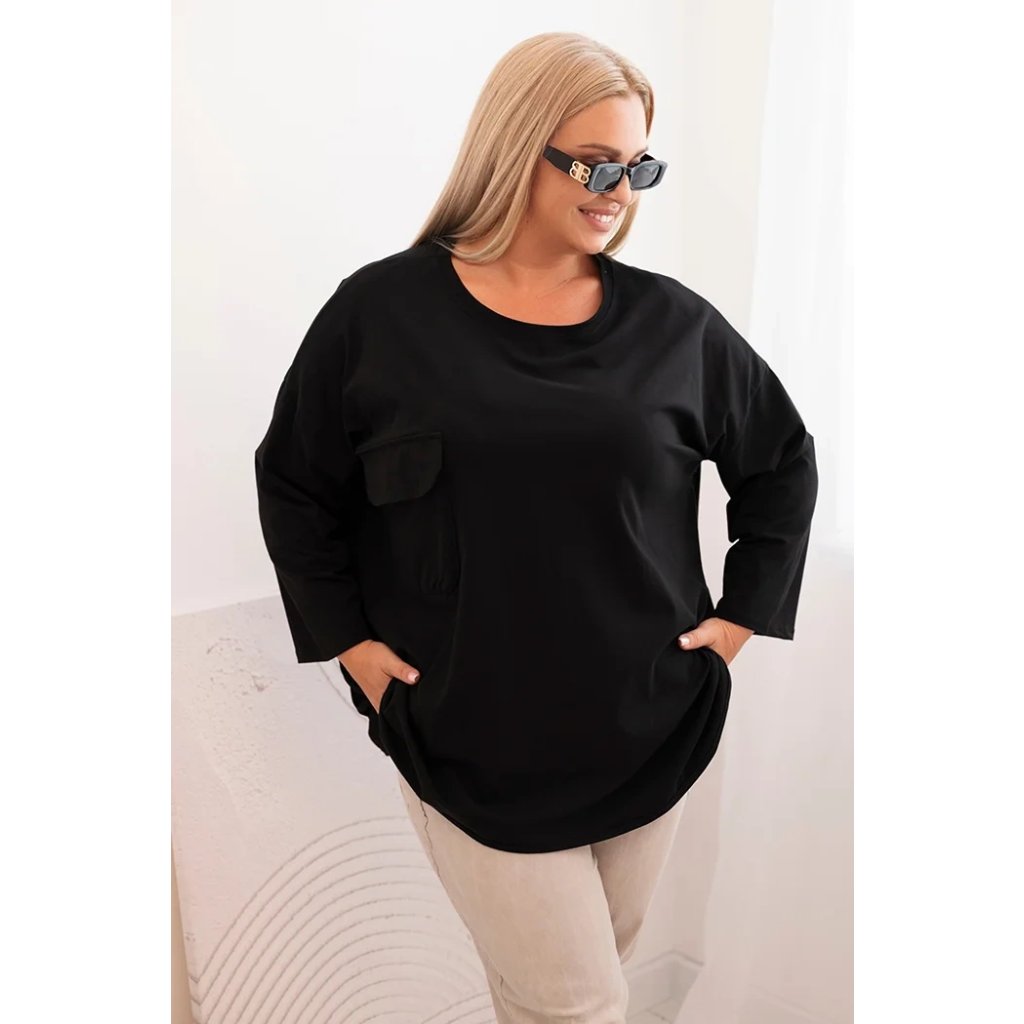 Dámská blůza Plus Size s bavlnou, s kapsou a ohrnutým rukávem černá