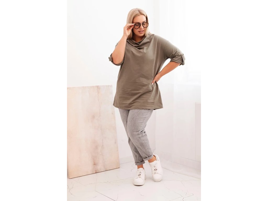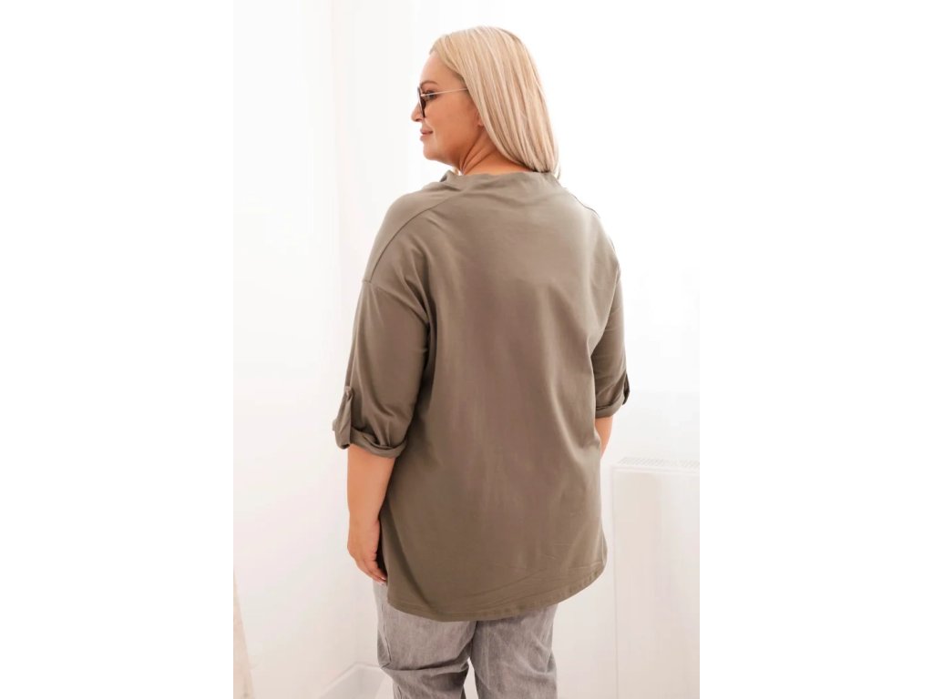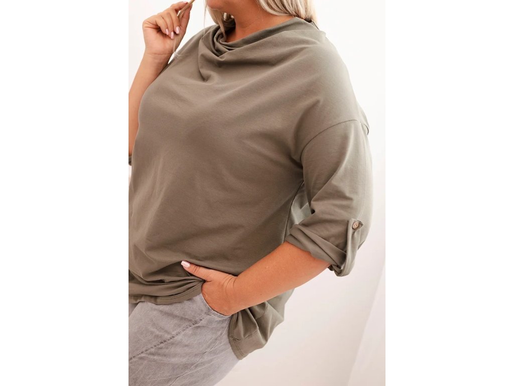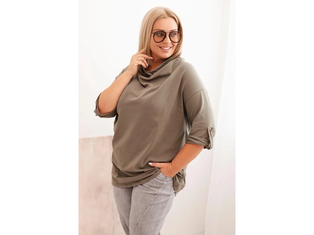 Dámská blůza Plus Size s bavlnou volného střihu s vodním výstřihem khaki
