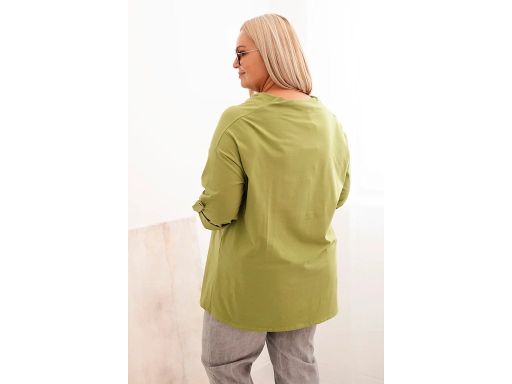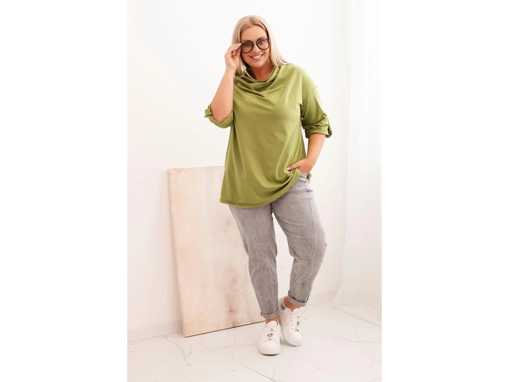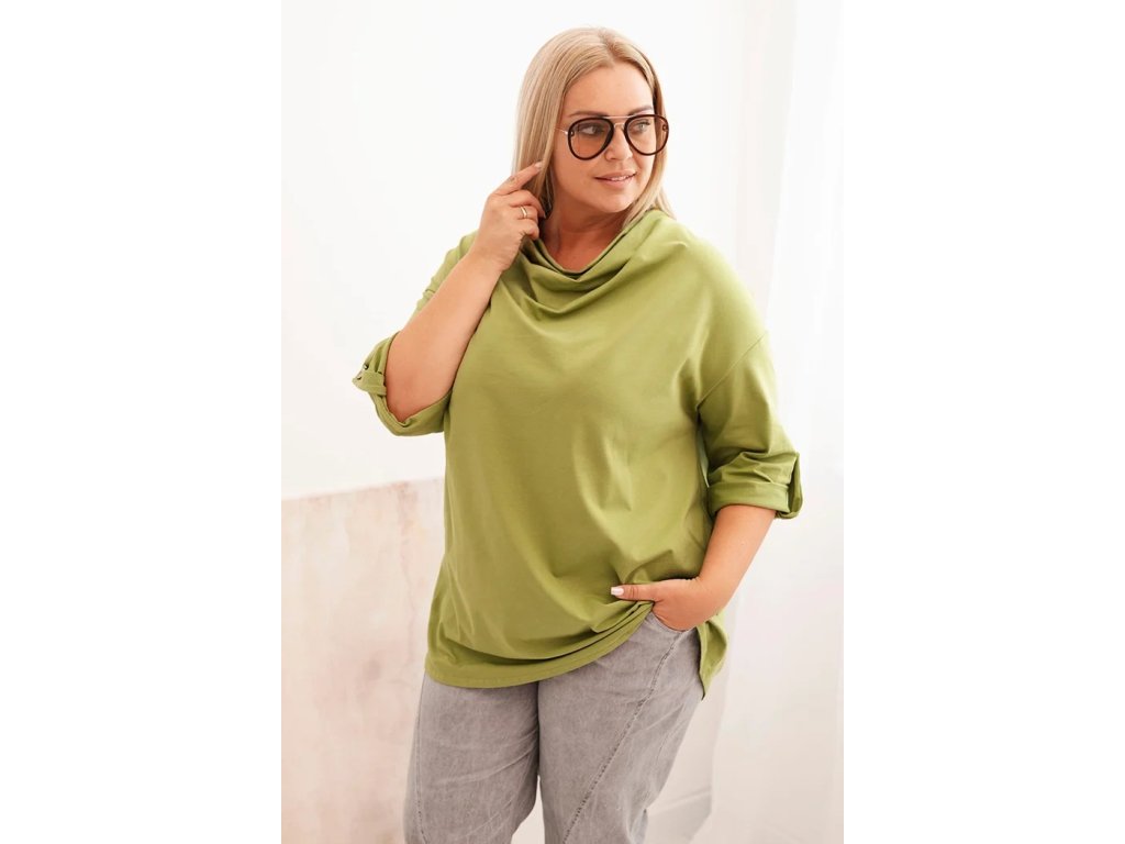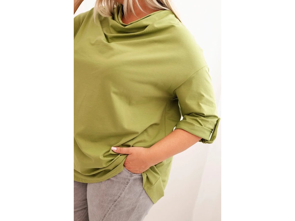 Dámská blůza Plus Size s bavlnou volného střihu s vodním výstřihem olivová