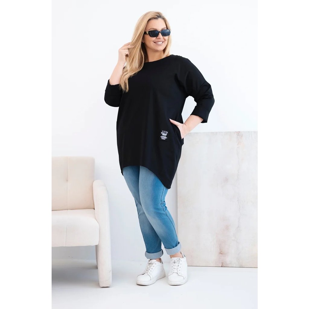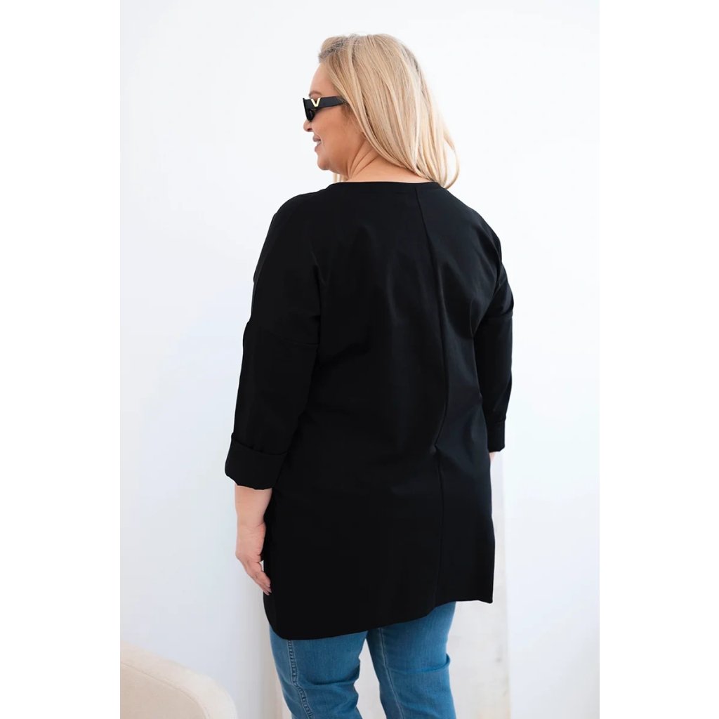 Dámská blůza Plus Size s delším zadním dílem a dlouhým rukávem černá