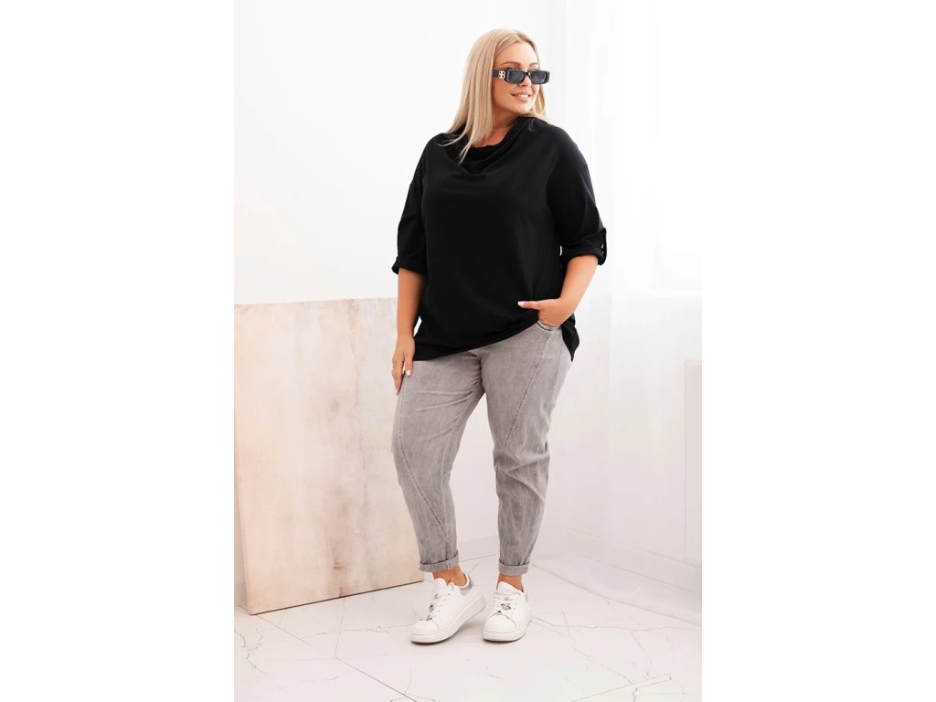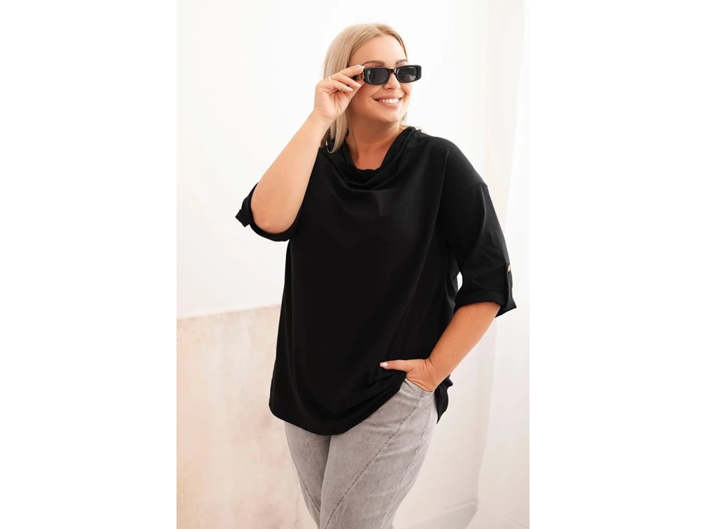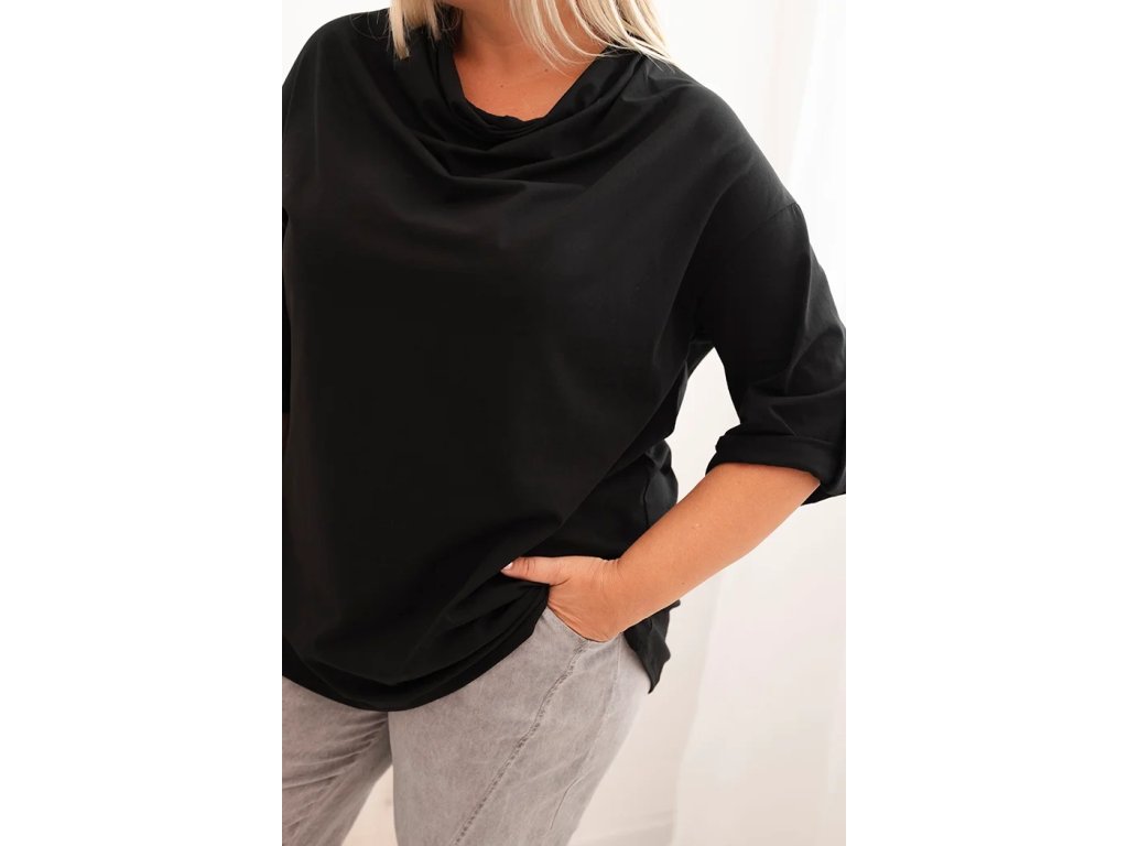 Dámská blůza Plus Size z bavlny s volným střihem a vodním výstřihem černá