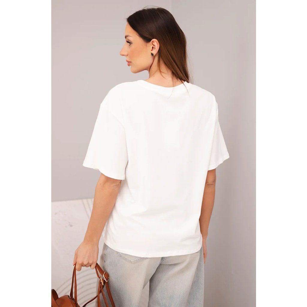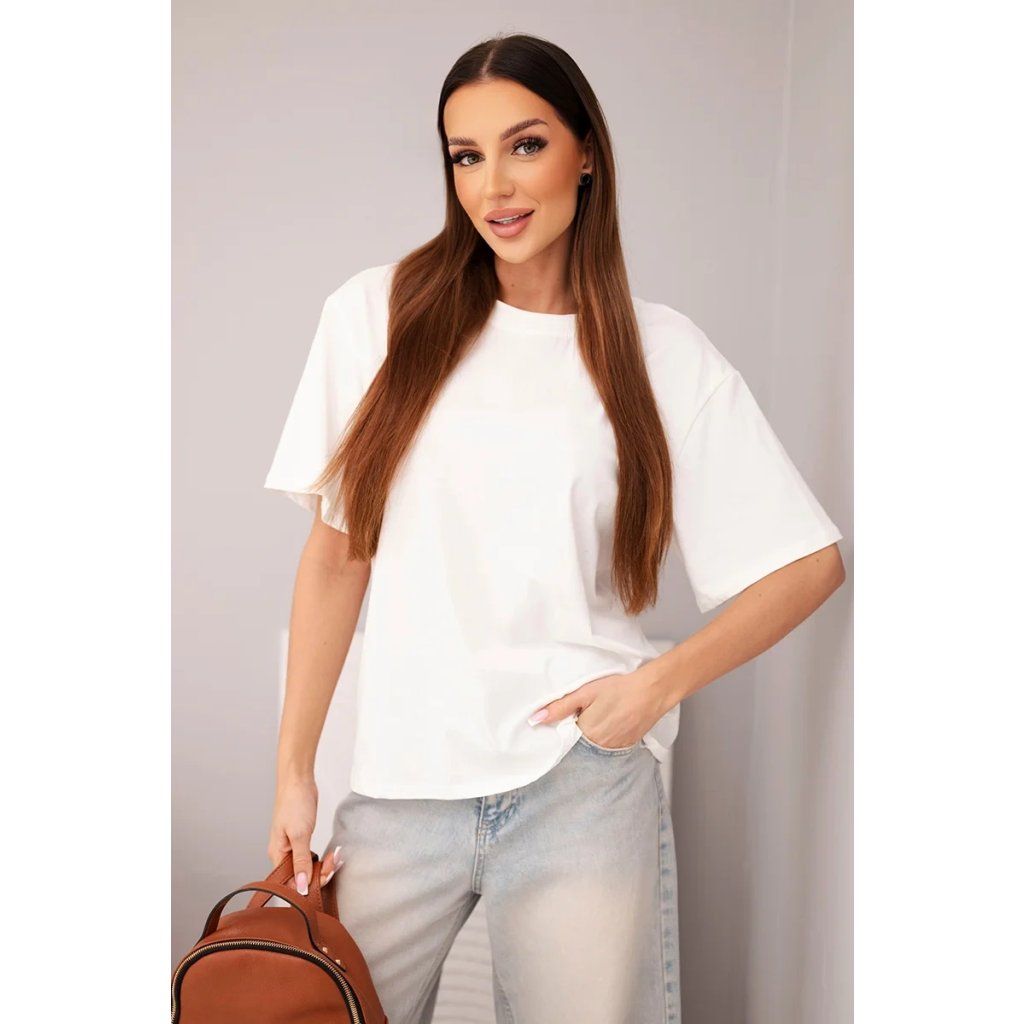 Dámská halenka s volným střihem je skvělou volbou pro ženy, které si cení pohodlí a nadčasového stylu. Klasický střih s krátkým rukávem a kulatým výstřihem zajišťuje, že tento model se výborně hodí jak do každodenních outfitů, tak do více casual kombinací. Je to ideální základní dámská halenka, kterou snadno zkombinujete s džíny, šortkami, legínami nebo sukní.